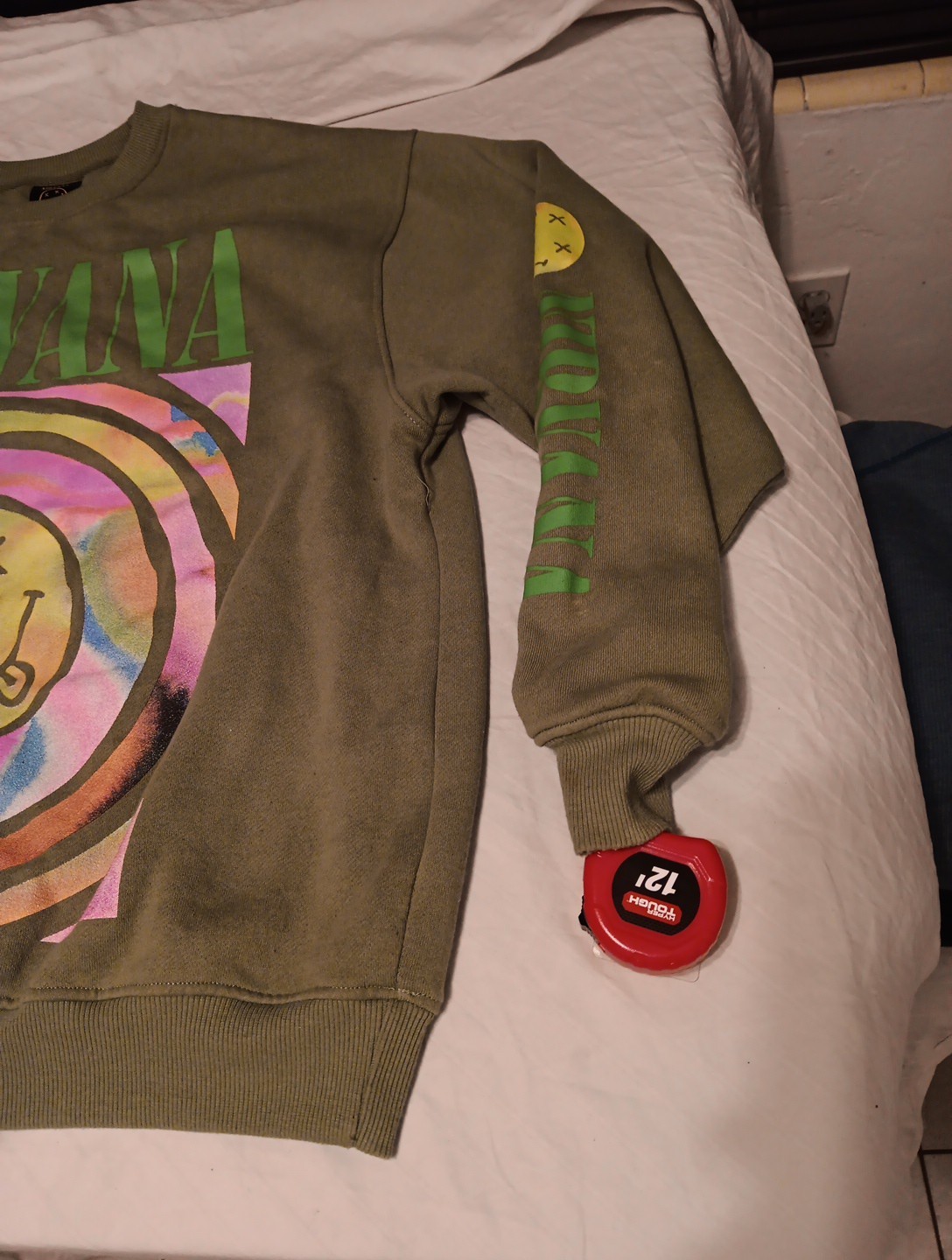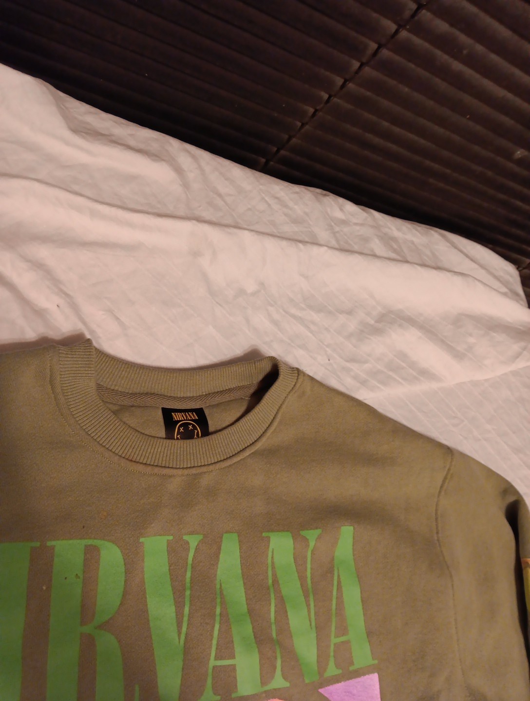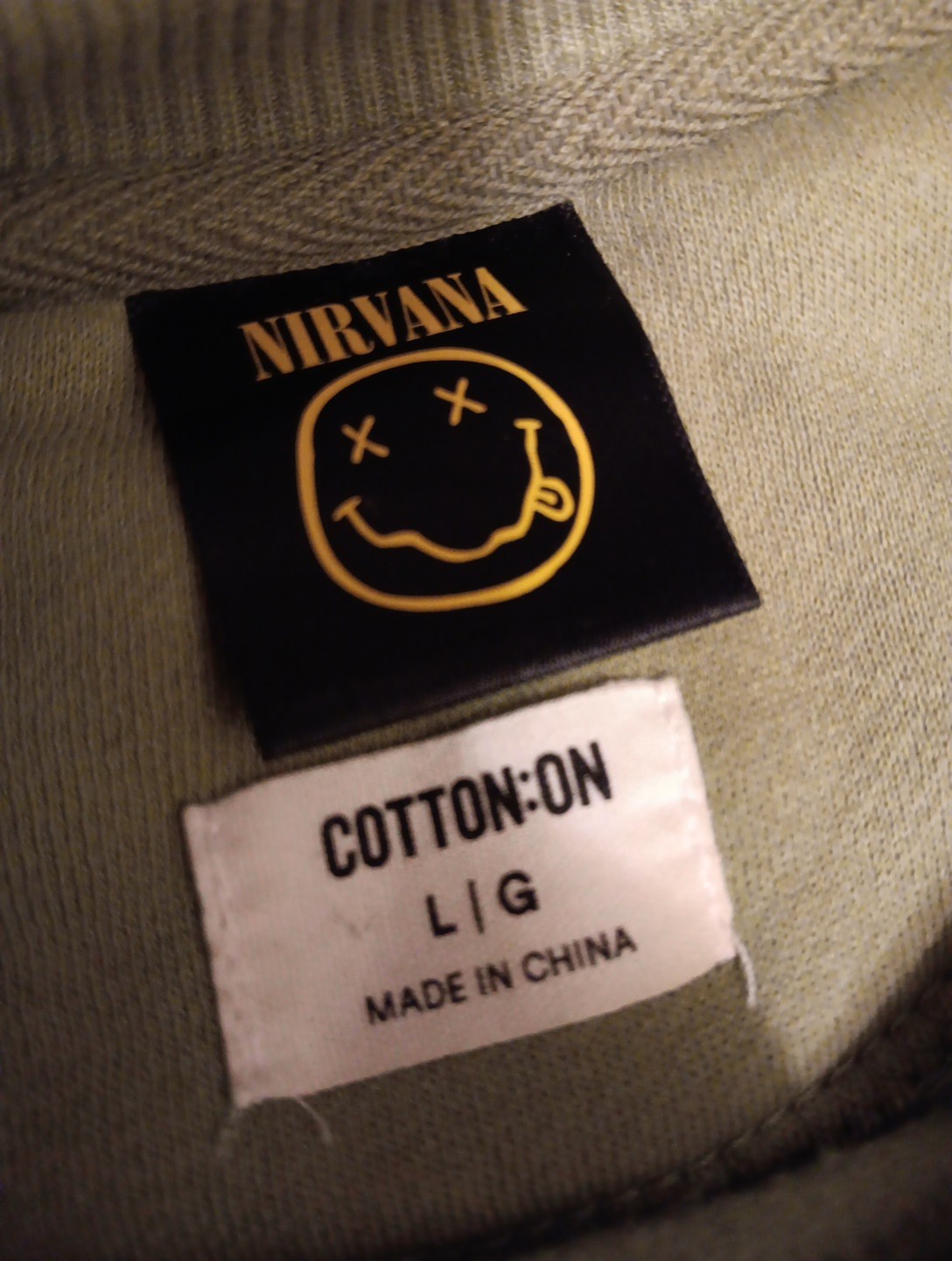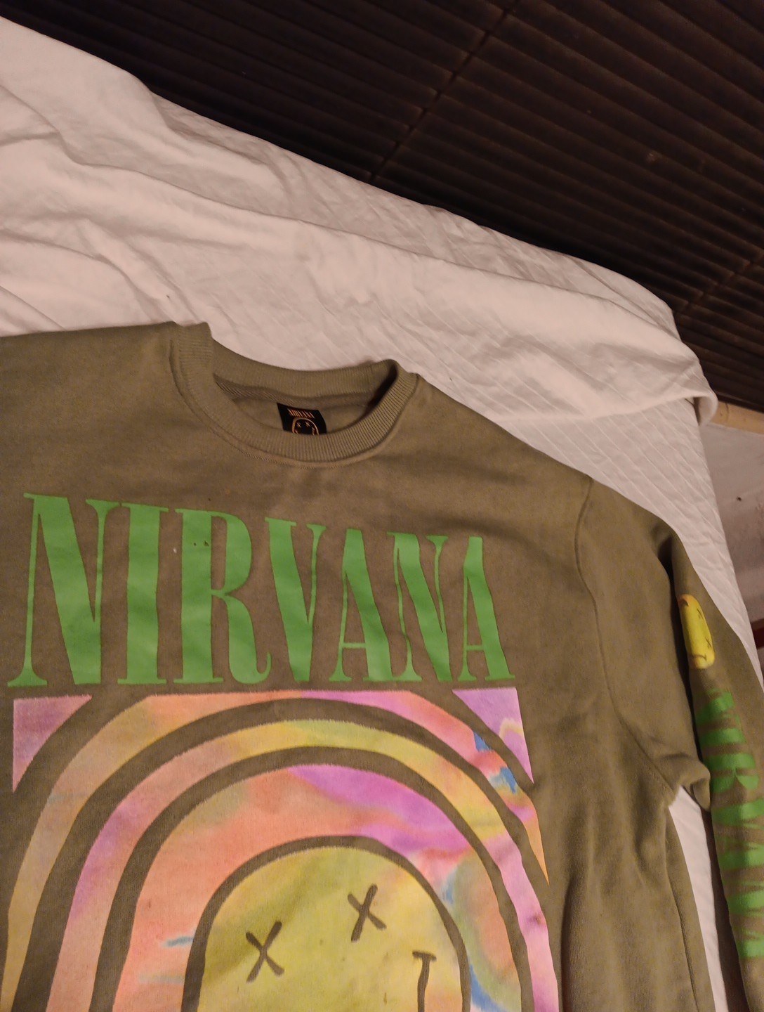 Nirvana Oversized Green Smiley Face Sweatshirt Long Sleeve Crew Neck Sz LARGE