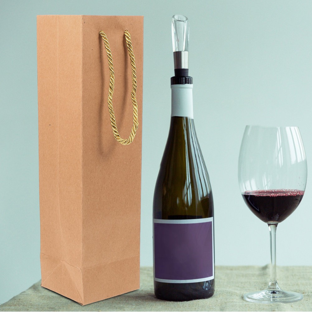 12 Pcs Kraft Paper Wine Bottle Gift Bags With Handle Bags 9.5 x 9 x 35 cm
