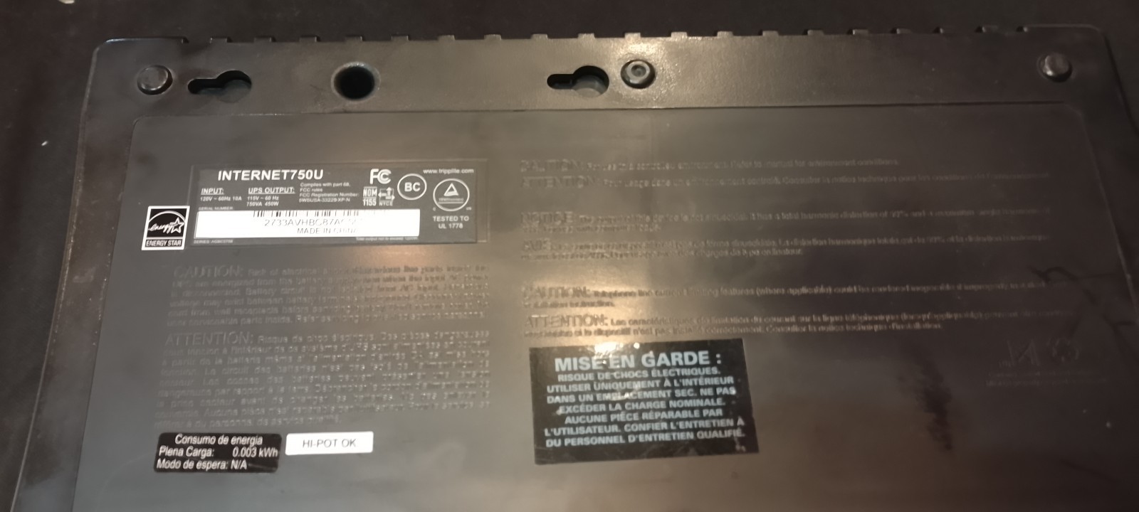 Tripp Lite UPS: 750VA 120V INTERNET750U