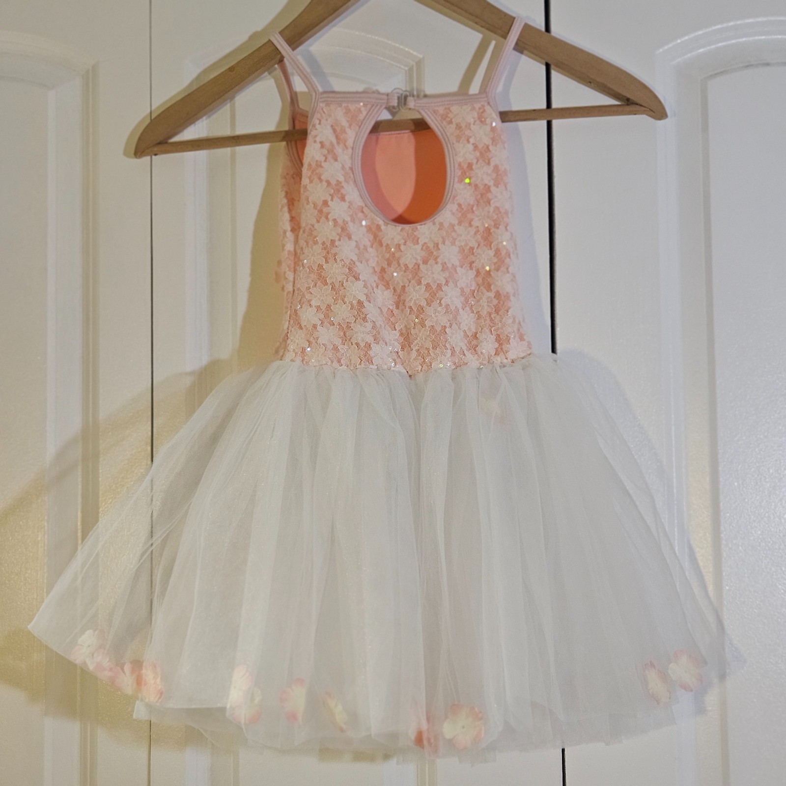 как выглядит Girls Costume Performance Ballet Tutu Recital Dance Light Pink Flower Lace SzCSM фото