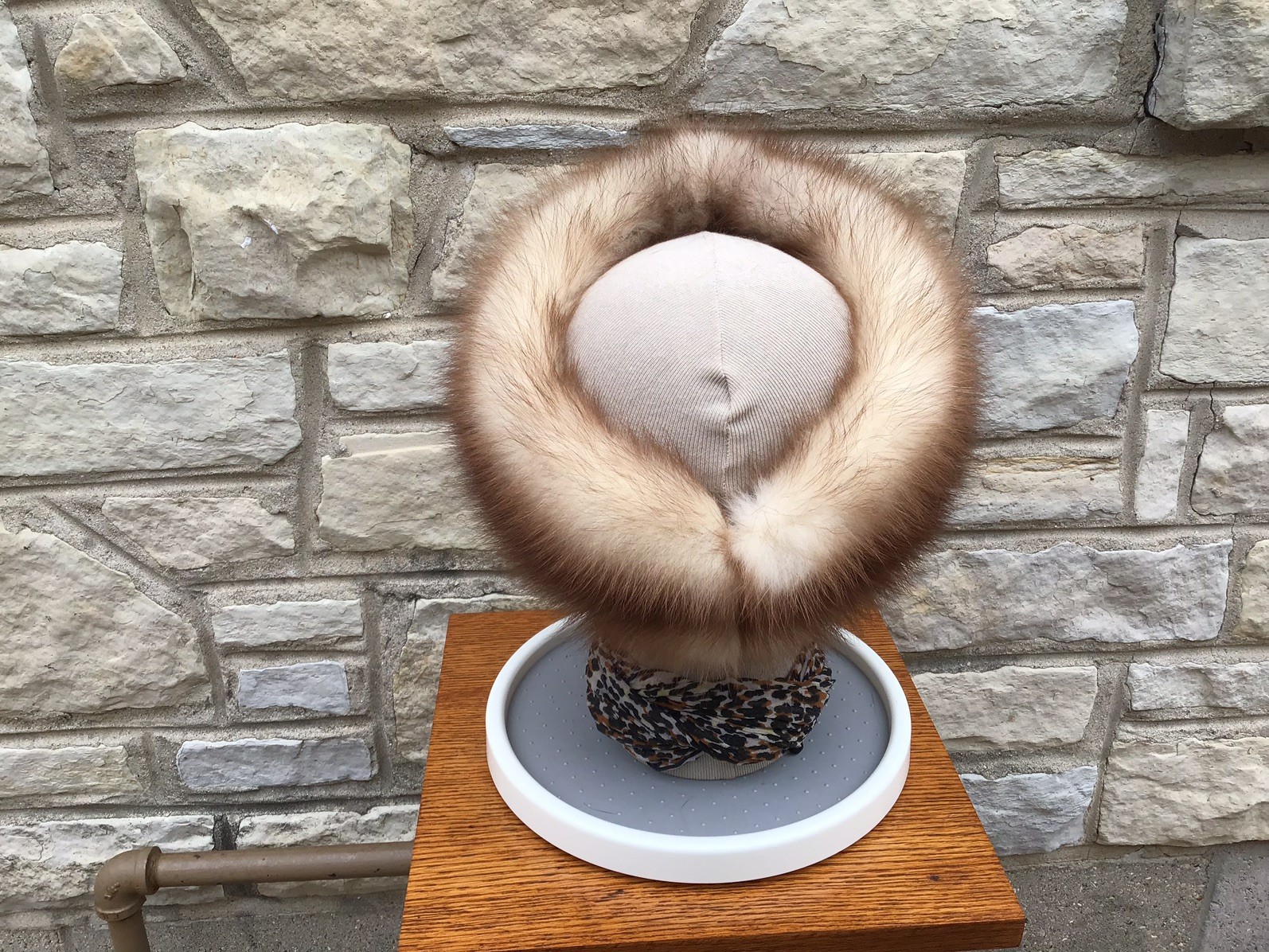 Real Fur Headband Stone Marten Golden color Head Wrap Halo Head Scarf 23.5 Soft