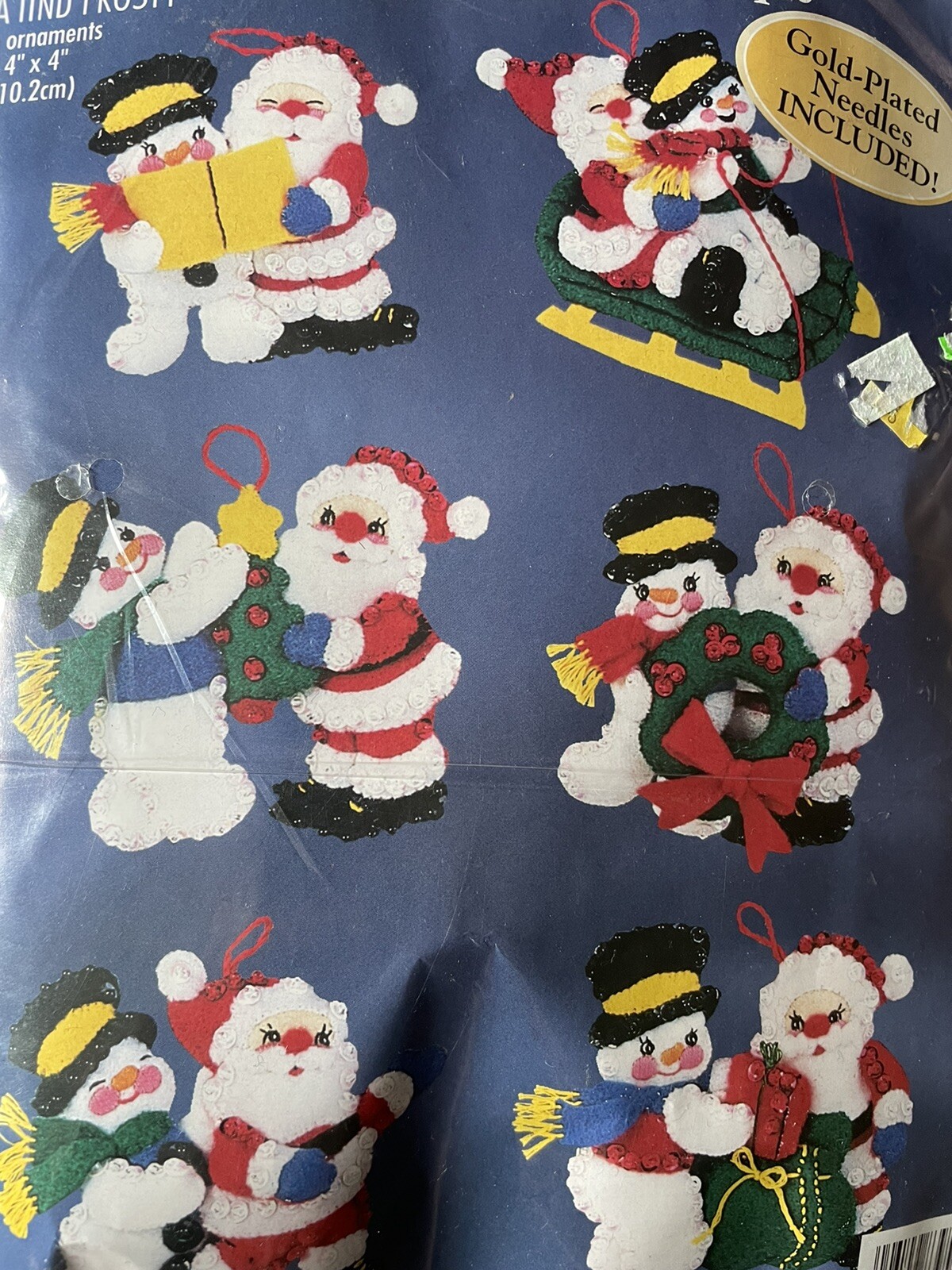 как выглядит Bucilla SANTA FROSTY Snowman Felt Christmas Ornament Kit 83957 Set Of 6 NEW фото