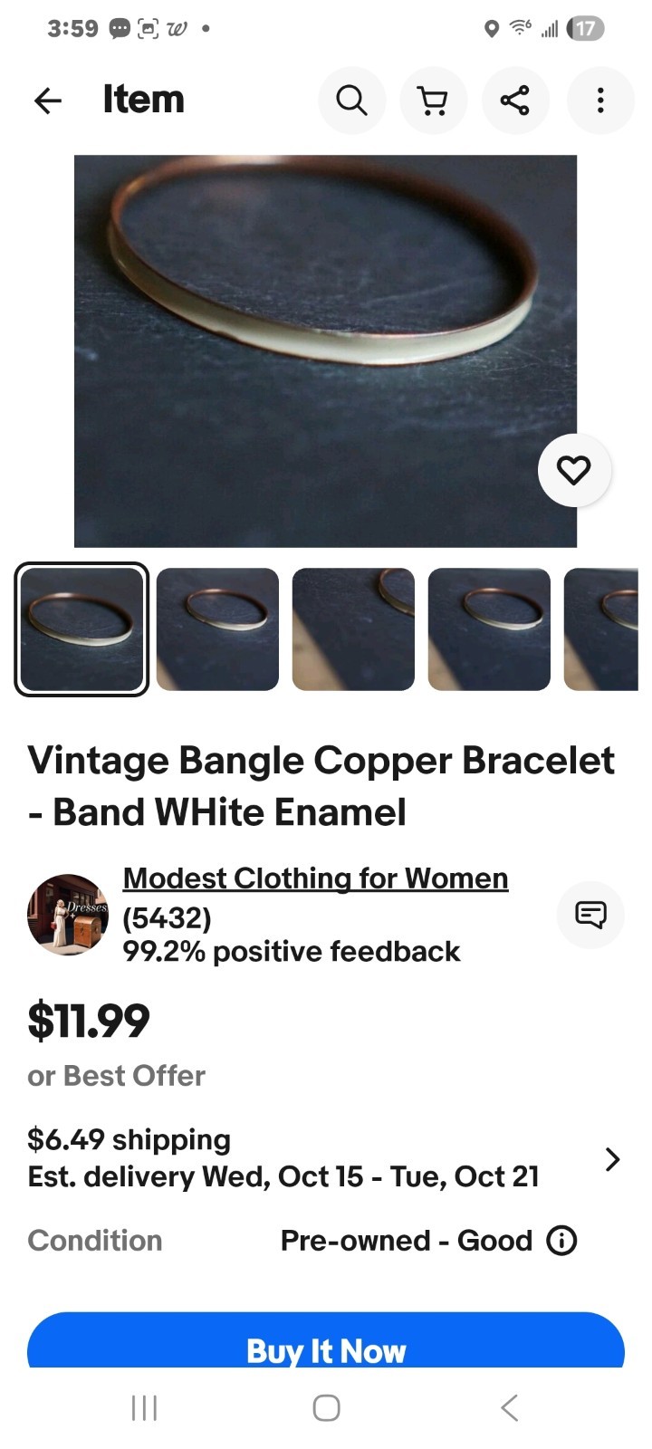 как выглядит Vintage Bangle Copper Childs Bracelet Band With White Enamel 2.5-3" W фото