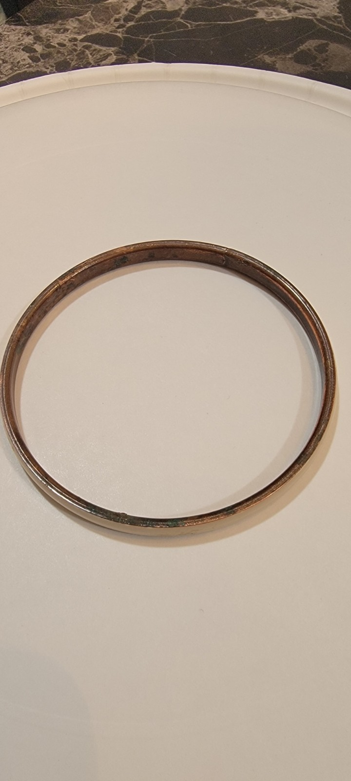 Vintage Bangle Copper Childs Bracelet Band With White Enamel 2.5-3 W
