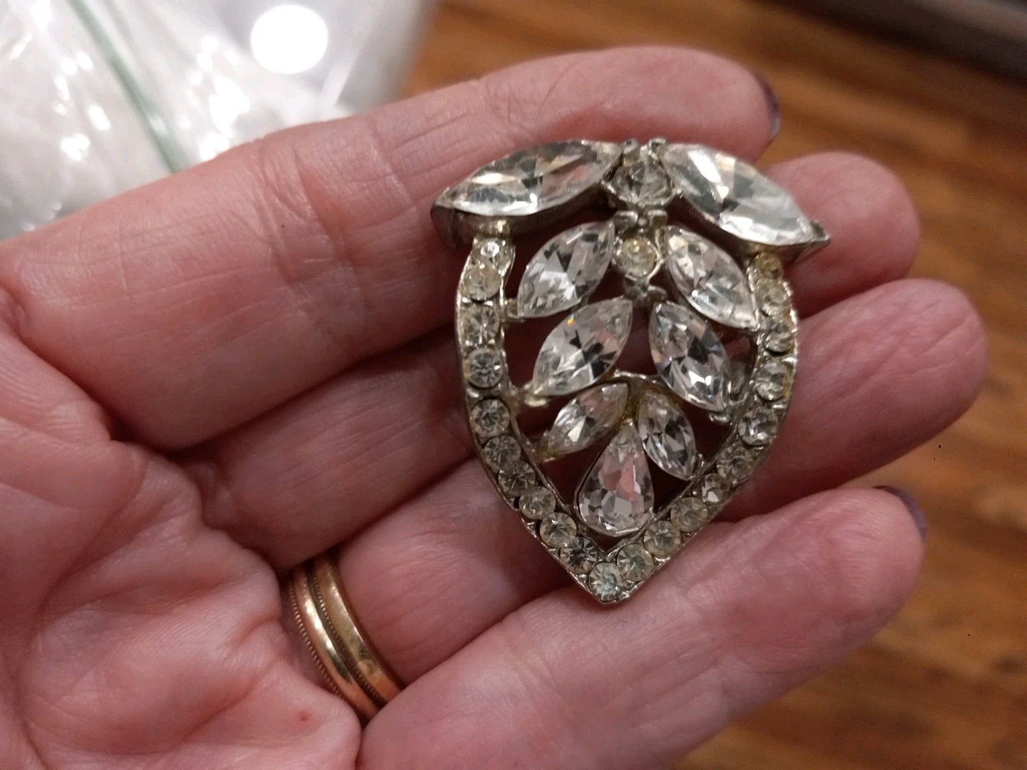 как выглядит VINTAGE ART DECO RHINESTONE SILVERSTONE SHOE CLIPS 5 Total фото