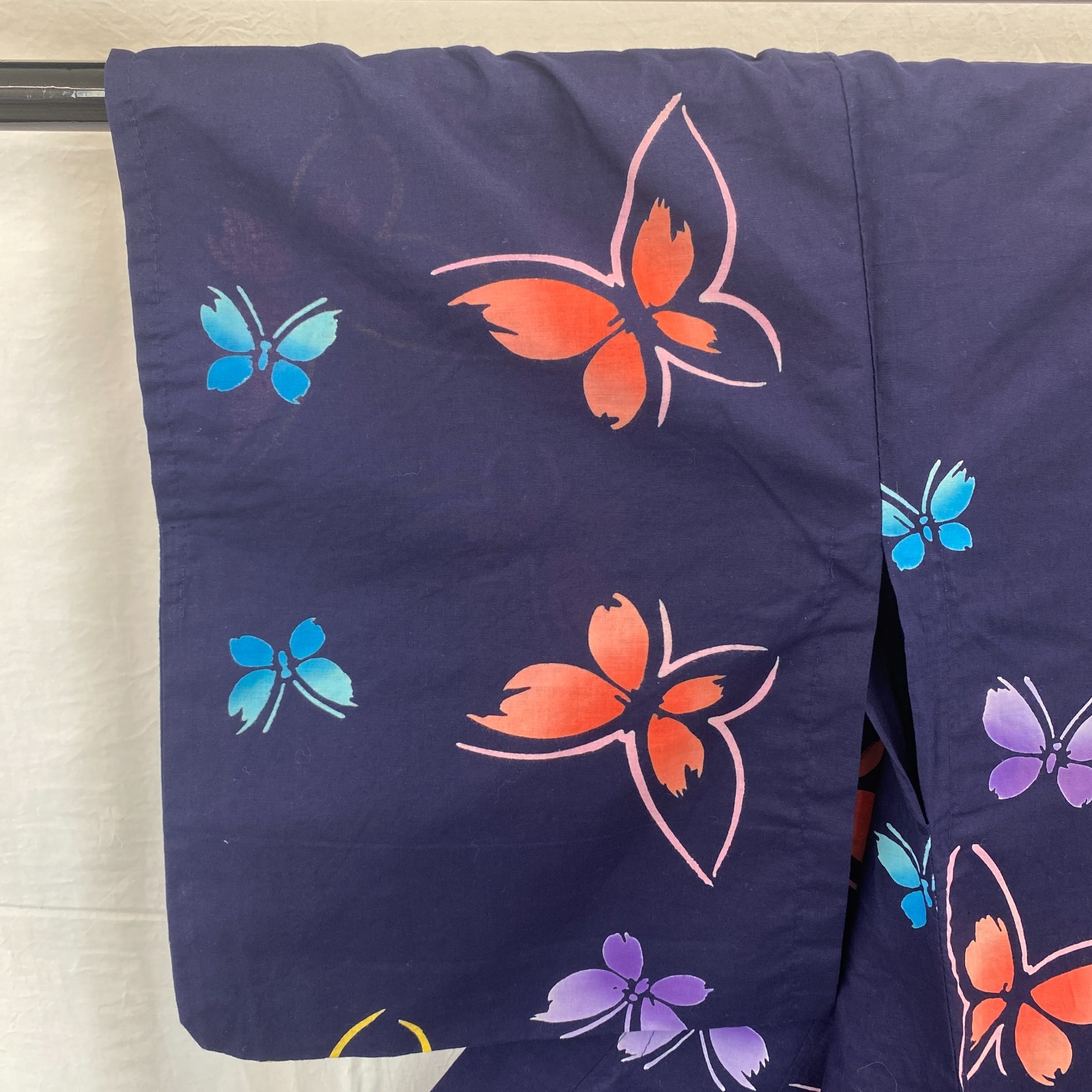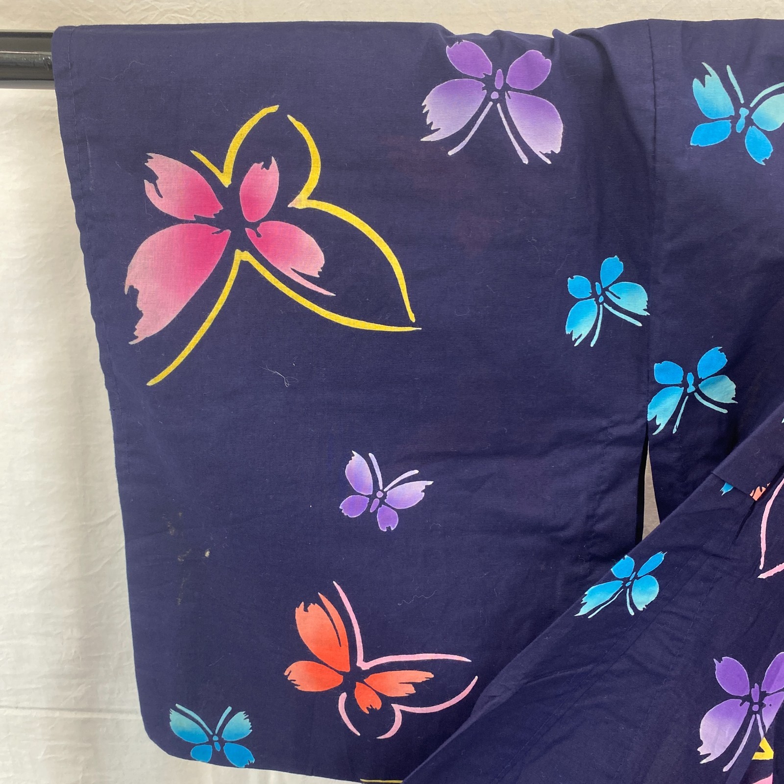 Japanese Vintage Kimono Yukata Cotton Navy No Lining Traditional Length 63 in