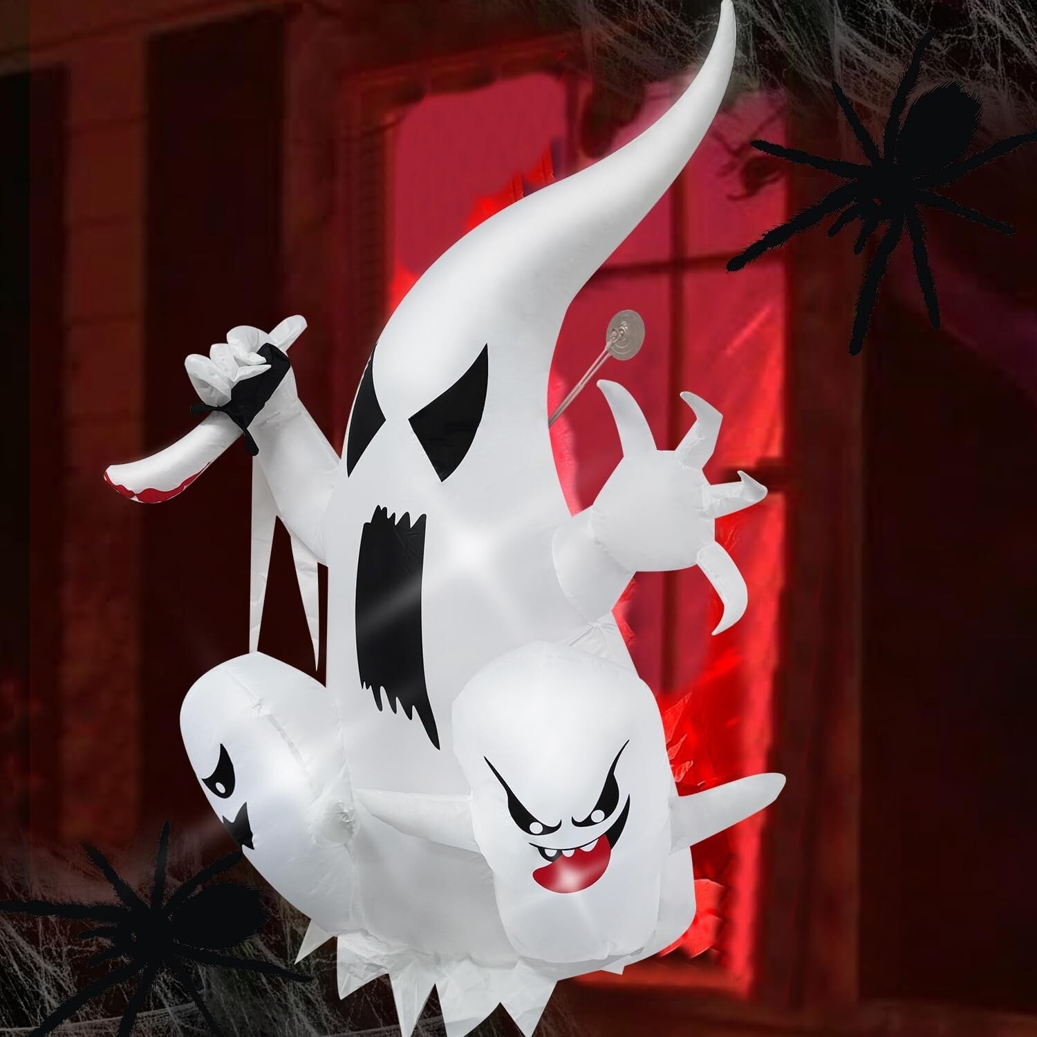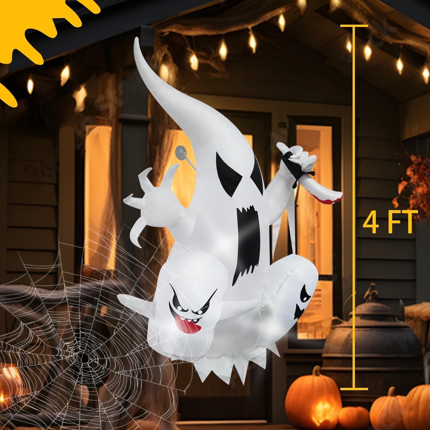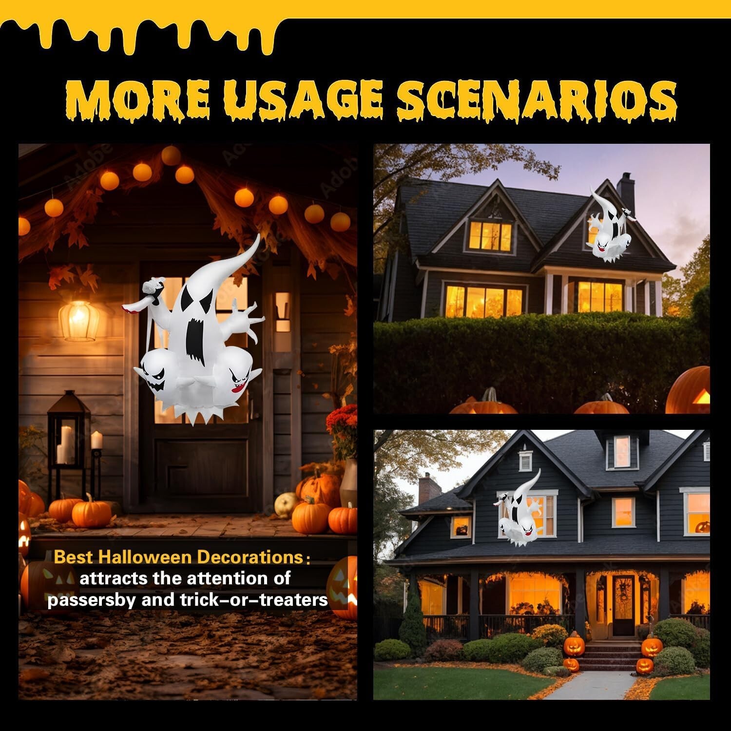 • 4 FT Halloween Inflatable 3 Ghosts w/ Build-in LED Broke Out from Window, BlowUp