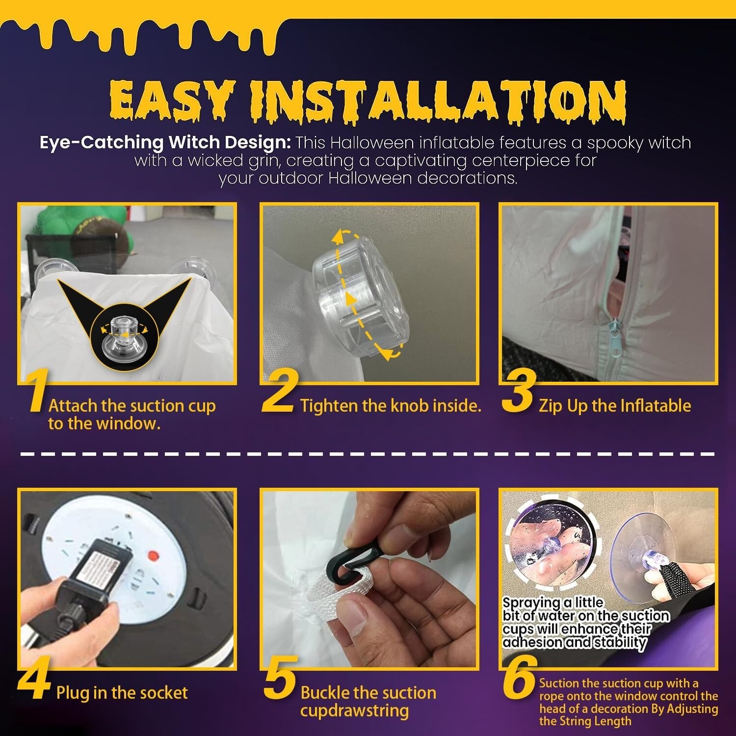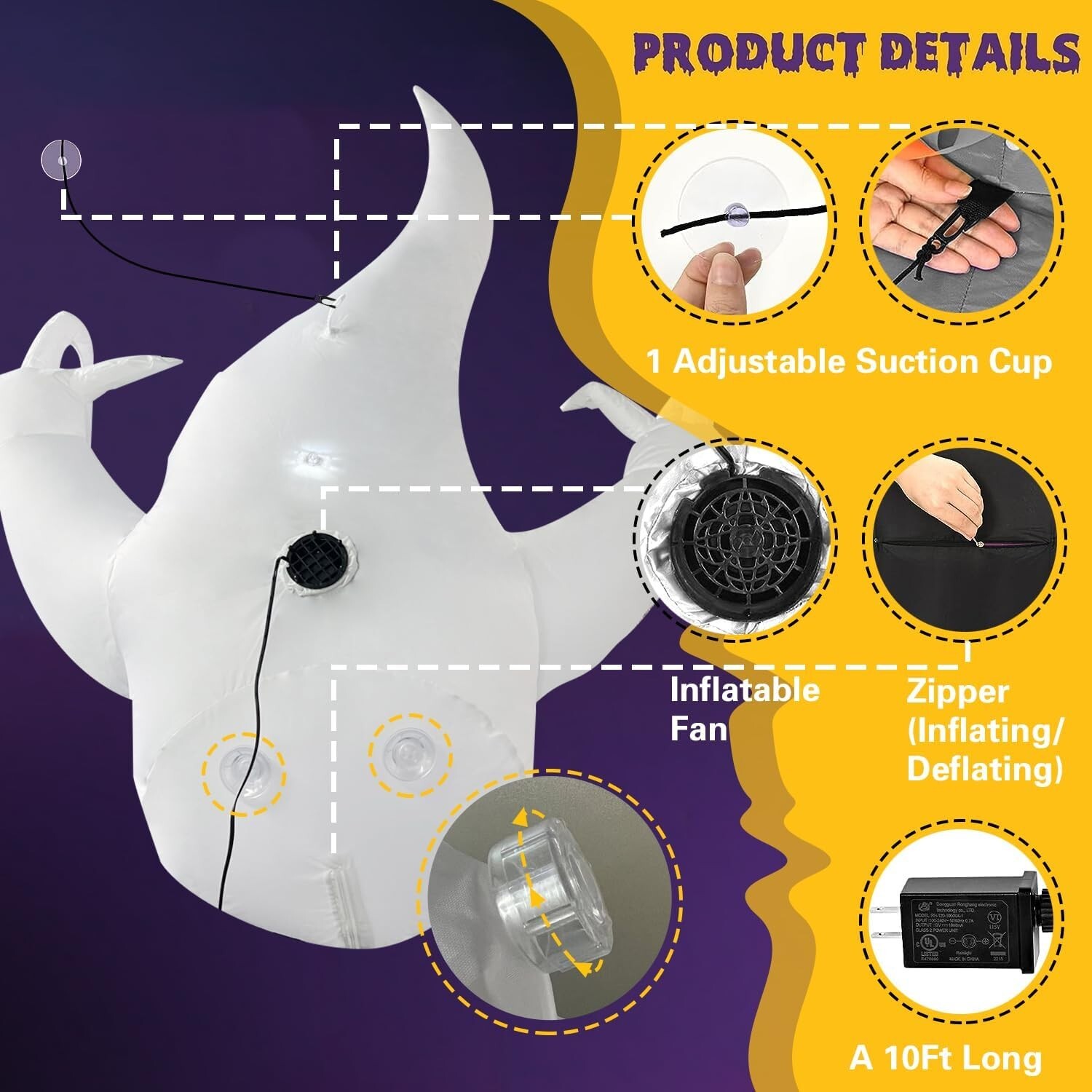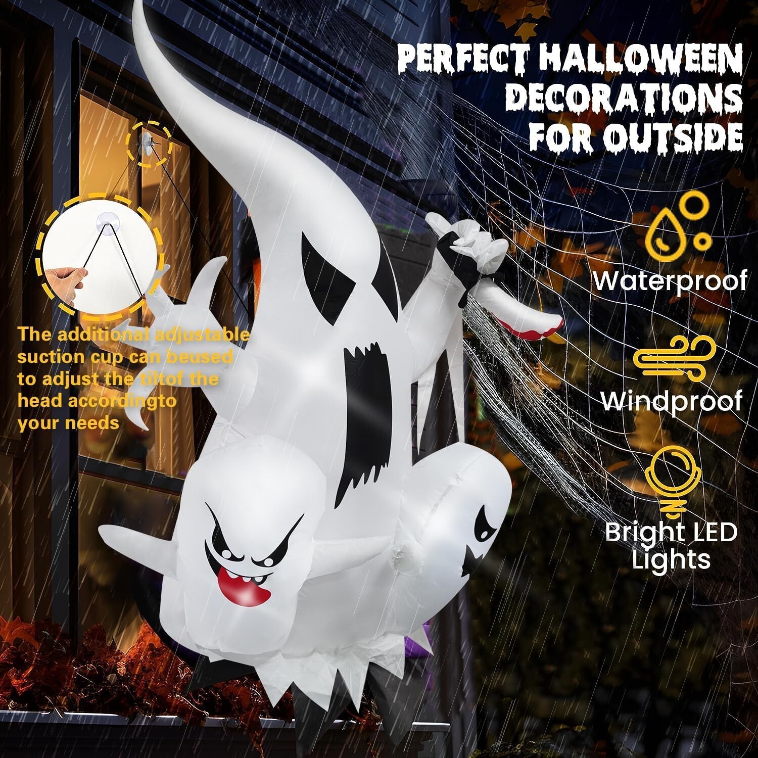 • 4 FT Halloween Inflatable 3 Ghosts w/ Build-in LED Broke Out from Window, BlowUp