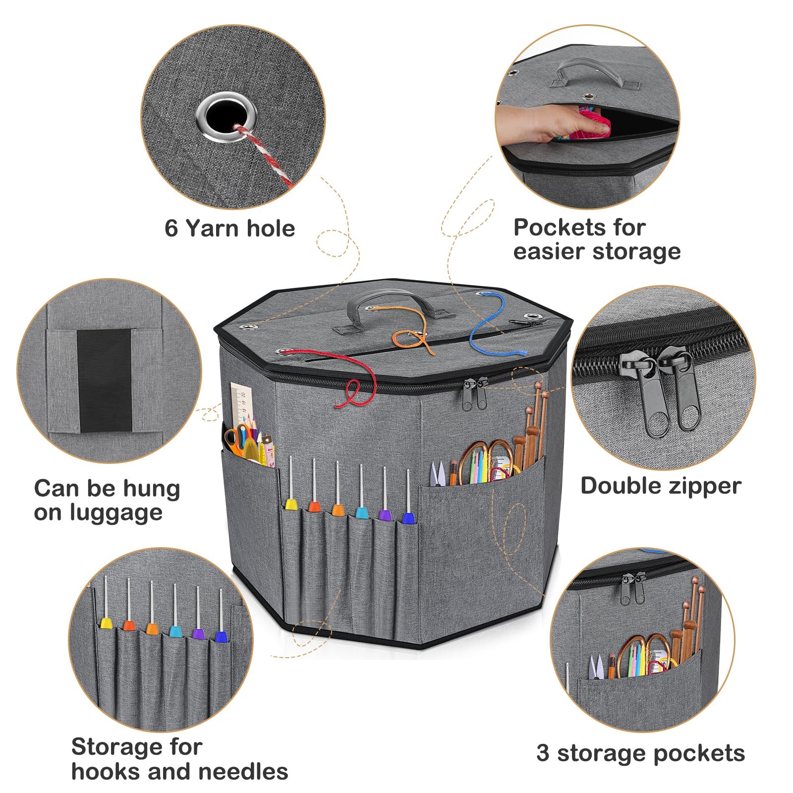 Crochet Bag Organizer for Yarn Storage, Foldable Knitting Bag,Fabric Yarn Holder