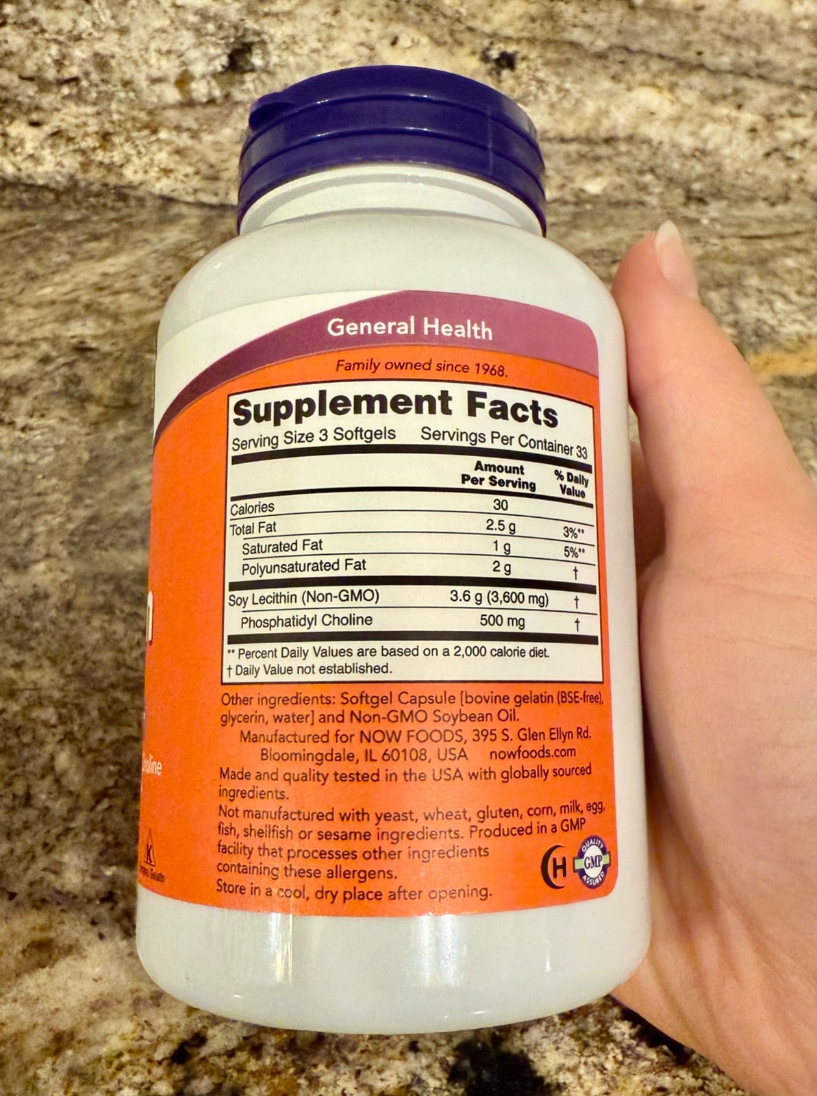 NOW Brand Non-GMO Lecithin 1200 mg Phosphatidyl Choline 100 softgels EXP 04/2028