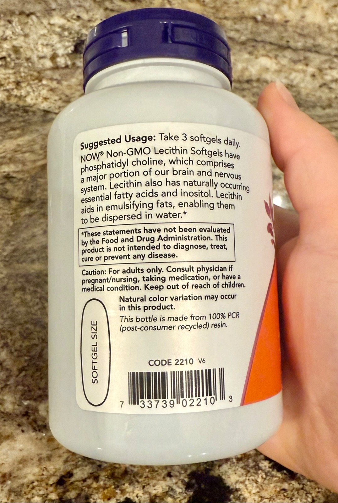 как выглядит NOW Brand Non-GMO Lecithin 1200 mg Phosphatidyl Choline 100 softgels EXP 04/2028 фото
