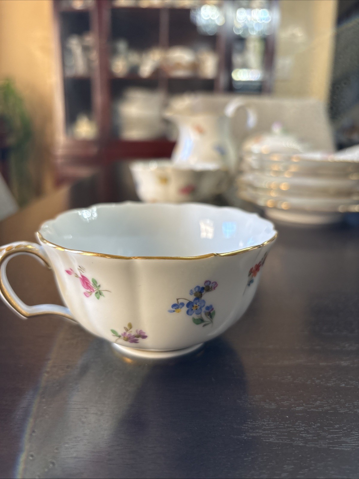 MEISSEN Scattered Flowers gold rim tea /coffee service, 15pcs,1st Quality-MINT