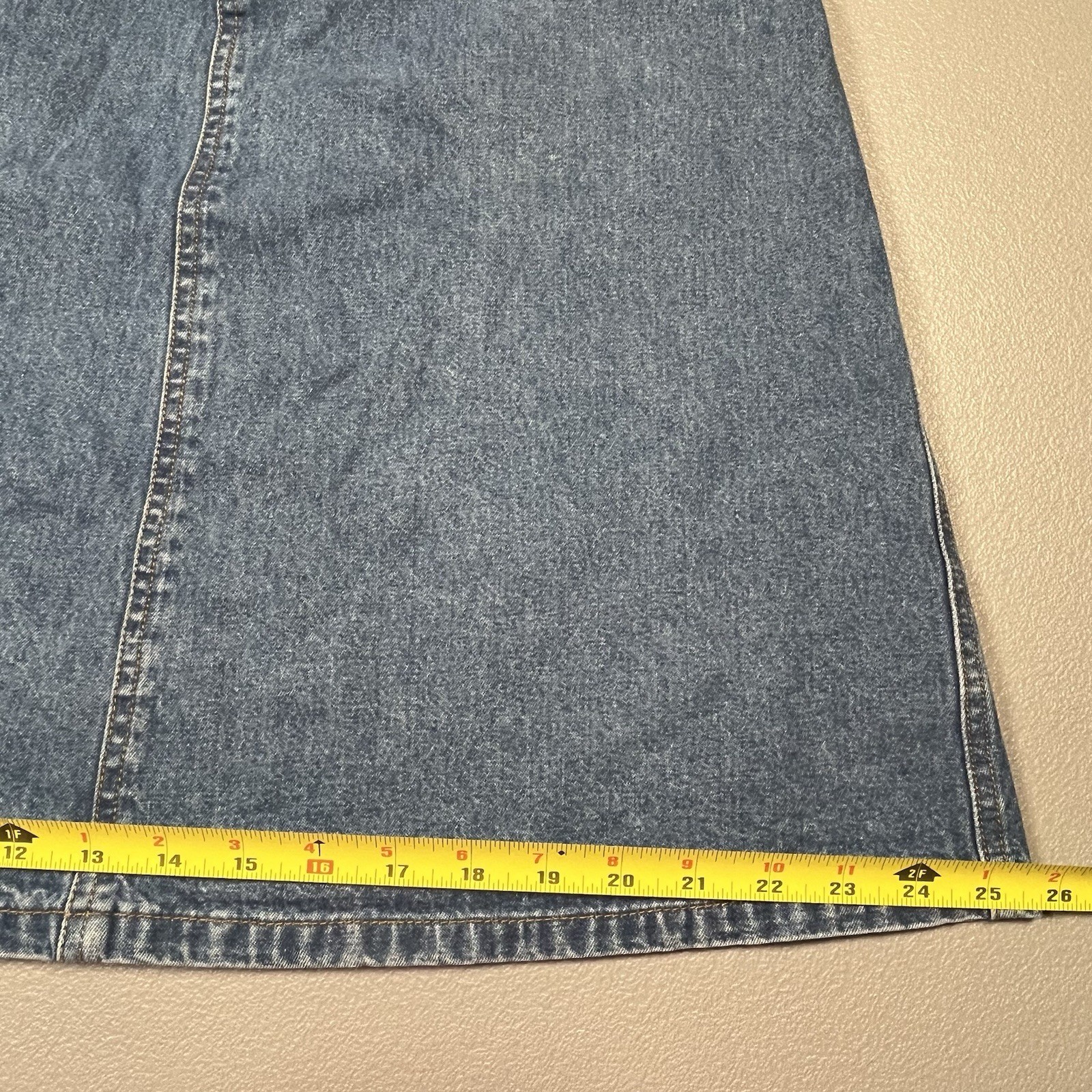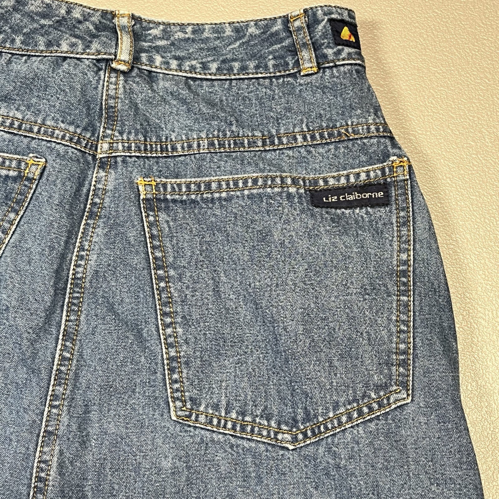 как выглядит VTG Liz Claiborne Blue Denim Yoked Midi Flare Skirt Pockets Boho Modest Size 4 фото
