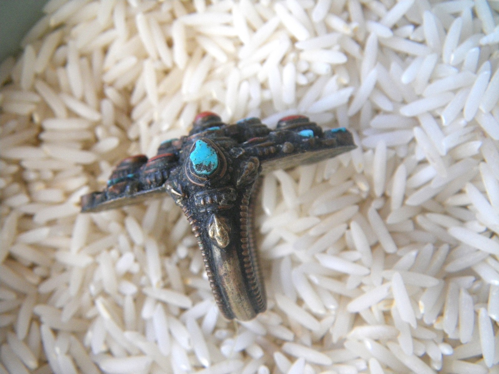 как выглядит Antique Tibetan Nepalese Himalayan Turquoise Coral Handmade Brass Ring Size 6.5 фото