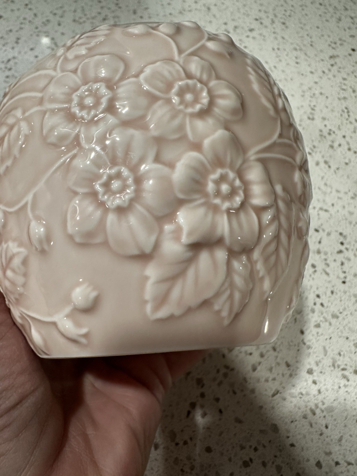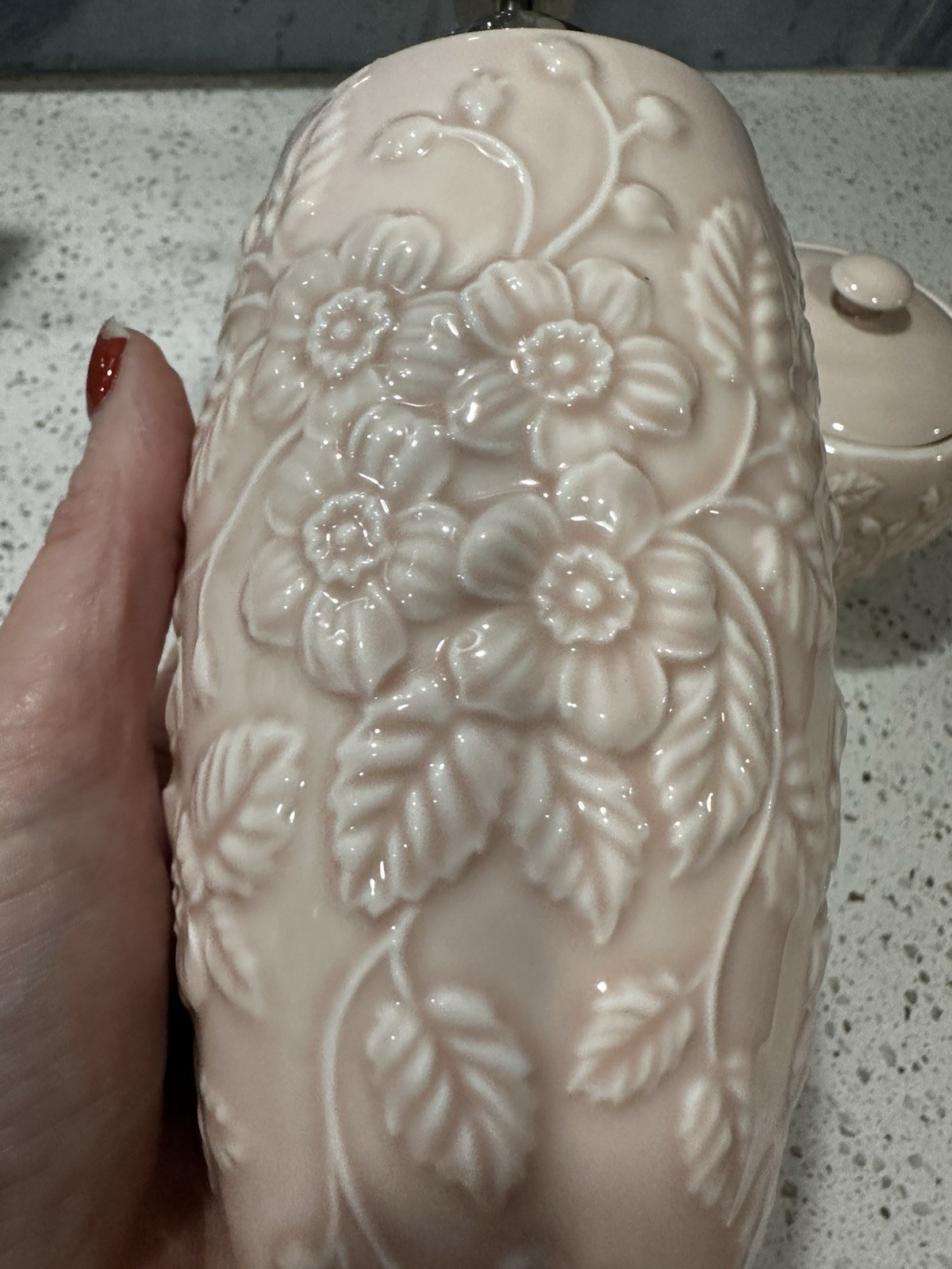 как выглядит PINK FLORAL Porcelain FLORAL SOAP PUMP DISPENSER And Dish Set EUC Croquette фото