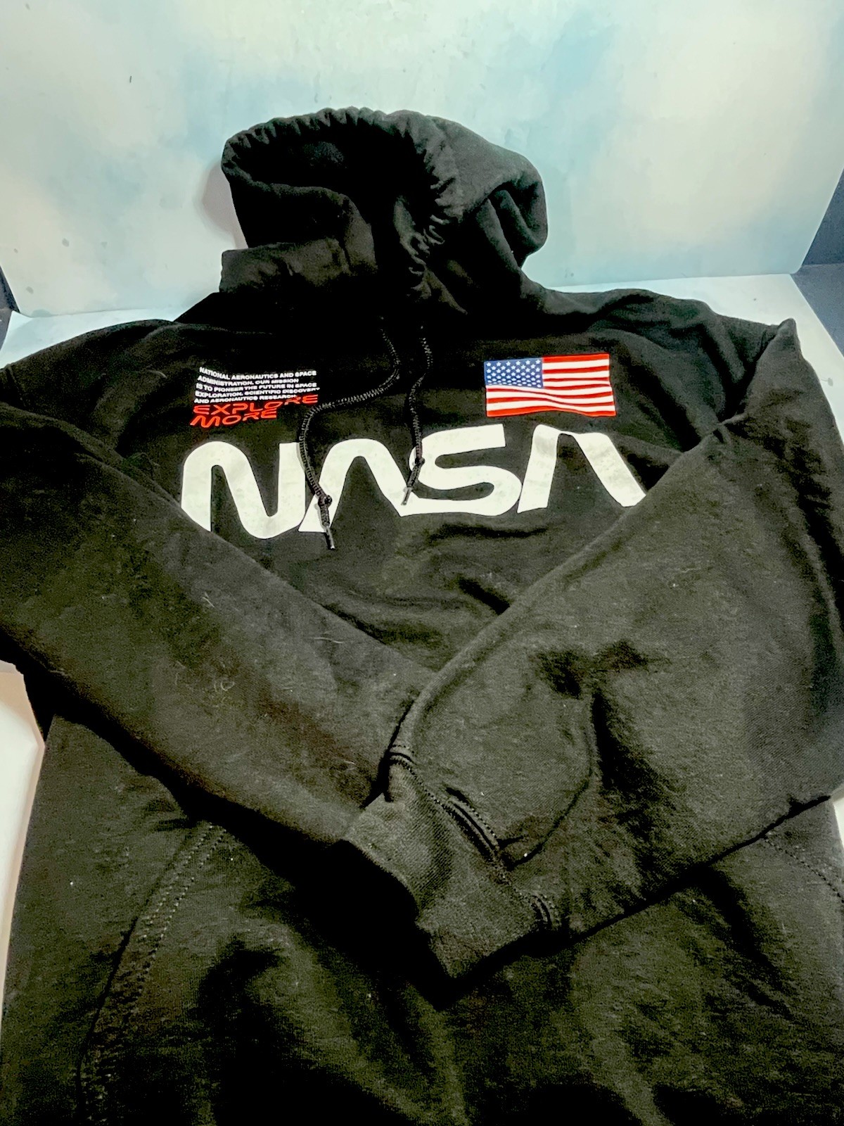 как выглядит NASA Logo Hoodie Pullover Sweatshirt - Size XL Black фото