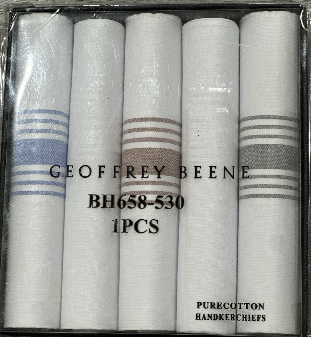 NEW Geoffrey Beene Men s Handkerchief Set 5 Pure Cotton Handkerchiefs Gift Box