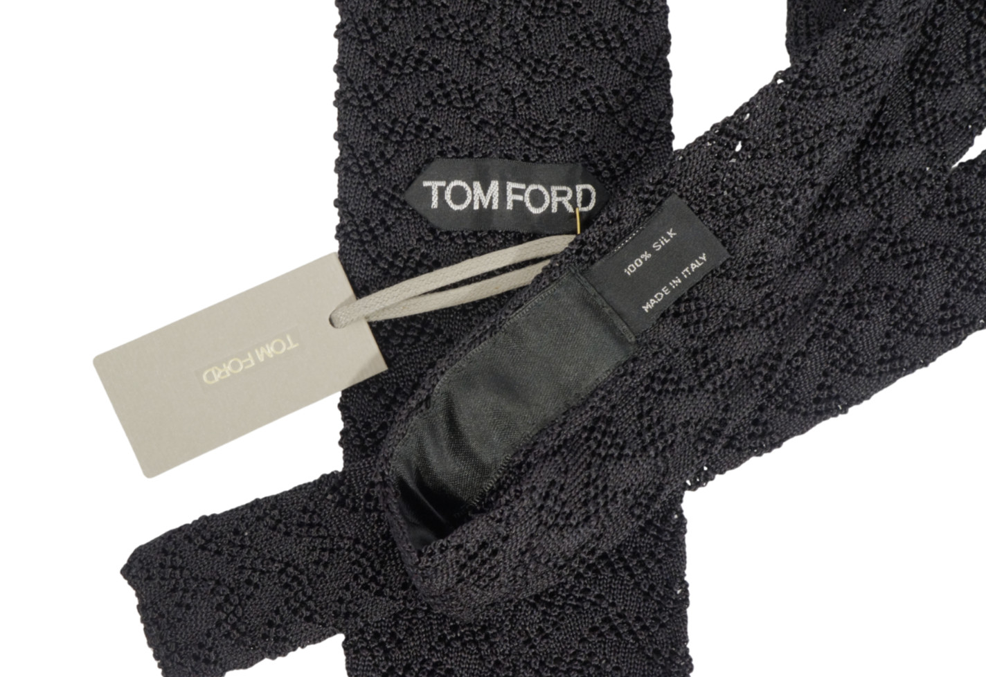 как выглядит 330 NWT TOM FORD Black Solid Knit Pattern Silk Neck Tie Italy 3.25W фото