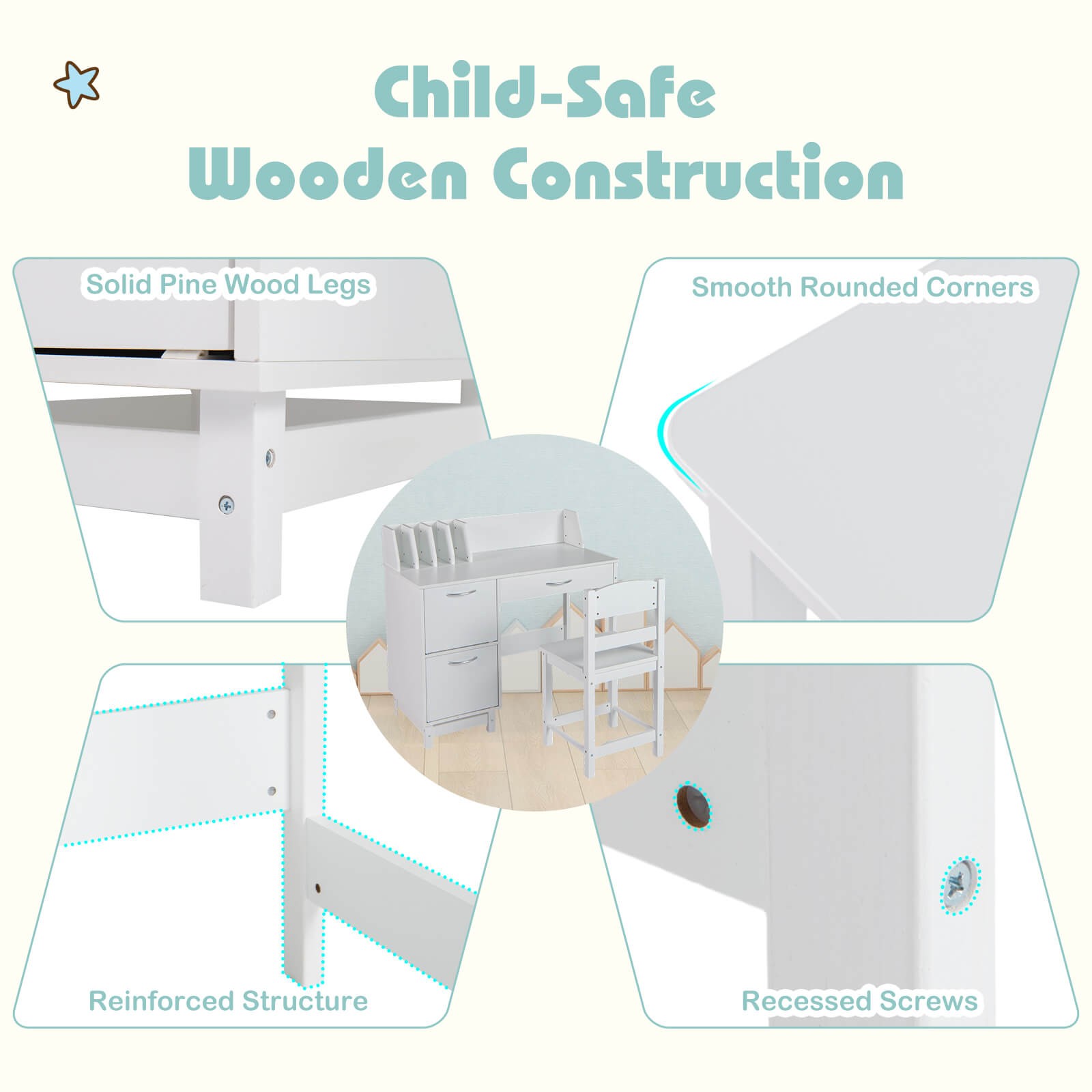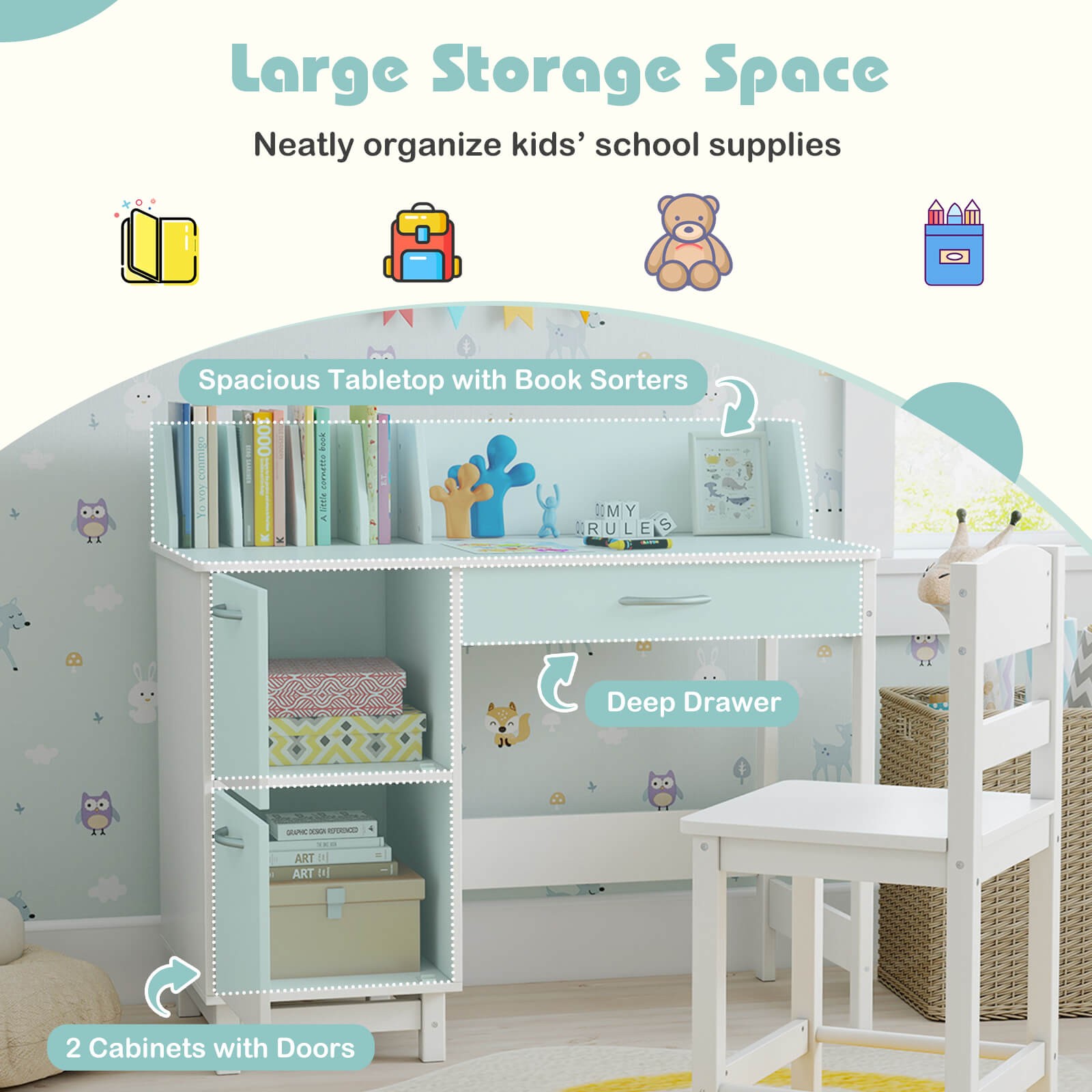 Kids Study Desk Chair Set w/Chair, 2 Storage Cabinets, Drawer, 4 Book Sorters