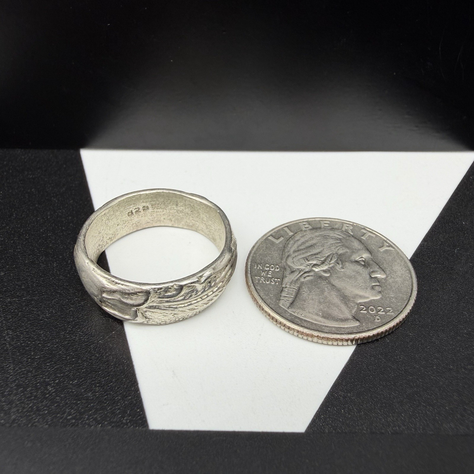 как выглядит Vintage Sterling Silver Cast Flower Floral Textured 7mm Band Size 8 Ring 6.2g фото