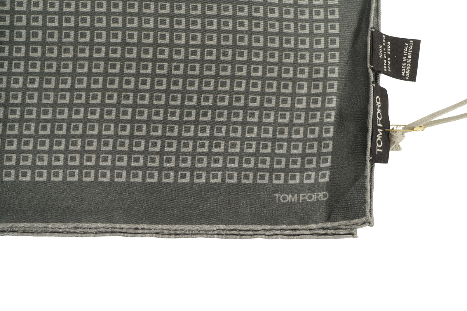 NWT TOM FORD Dark Gray w Tonal Geometric Silk Pocket Square Italy 16