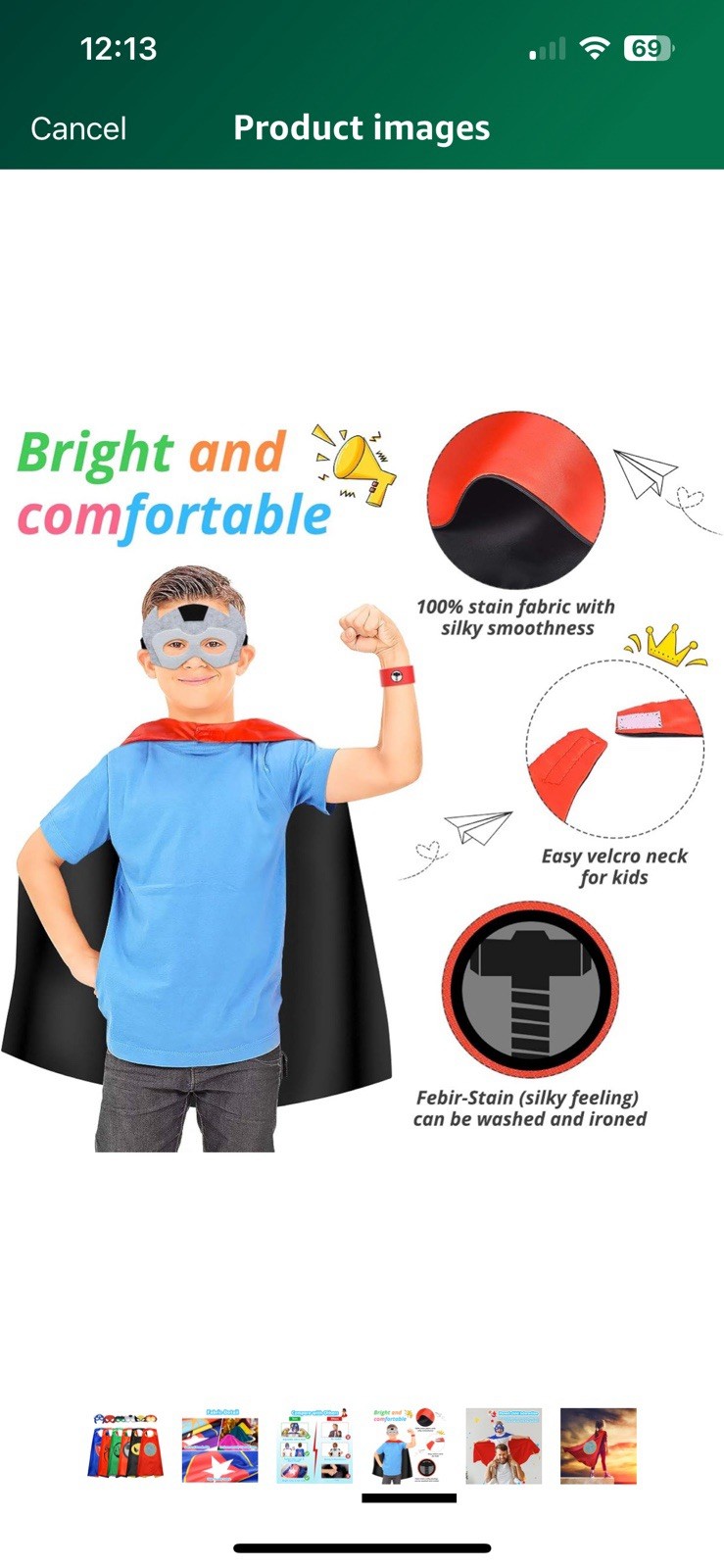 как выглядит 5 Superhero Capes with Masks Dress Up Costumes for Kids Boys Girls Party Cosplay фото