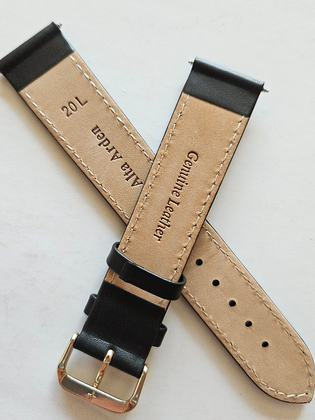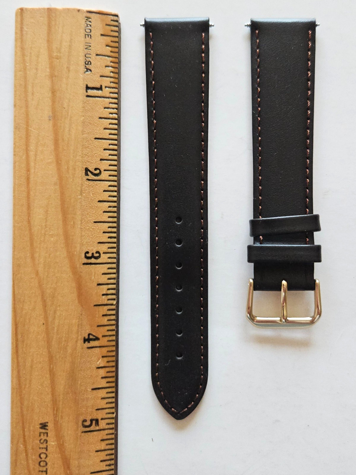как выглядит 20mm / Long - Brown Genuine Leather Watch Band - Gold Buckle / Pins Included фото