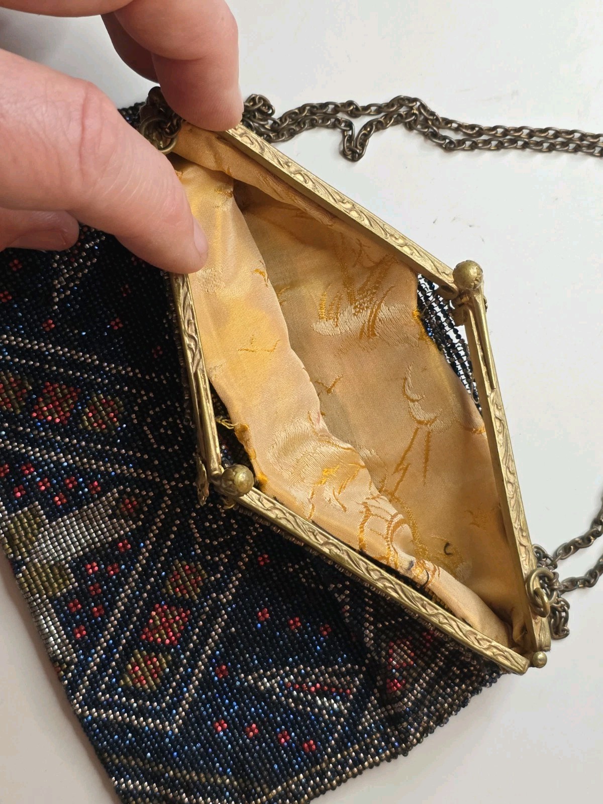 Antique DECO French Steel Cut Micro Beaded Art Geometric Bag Purse Free Shp