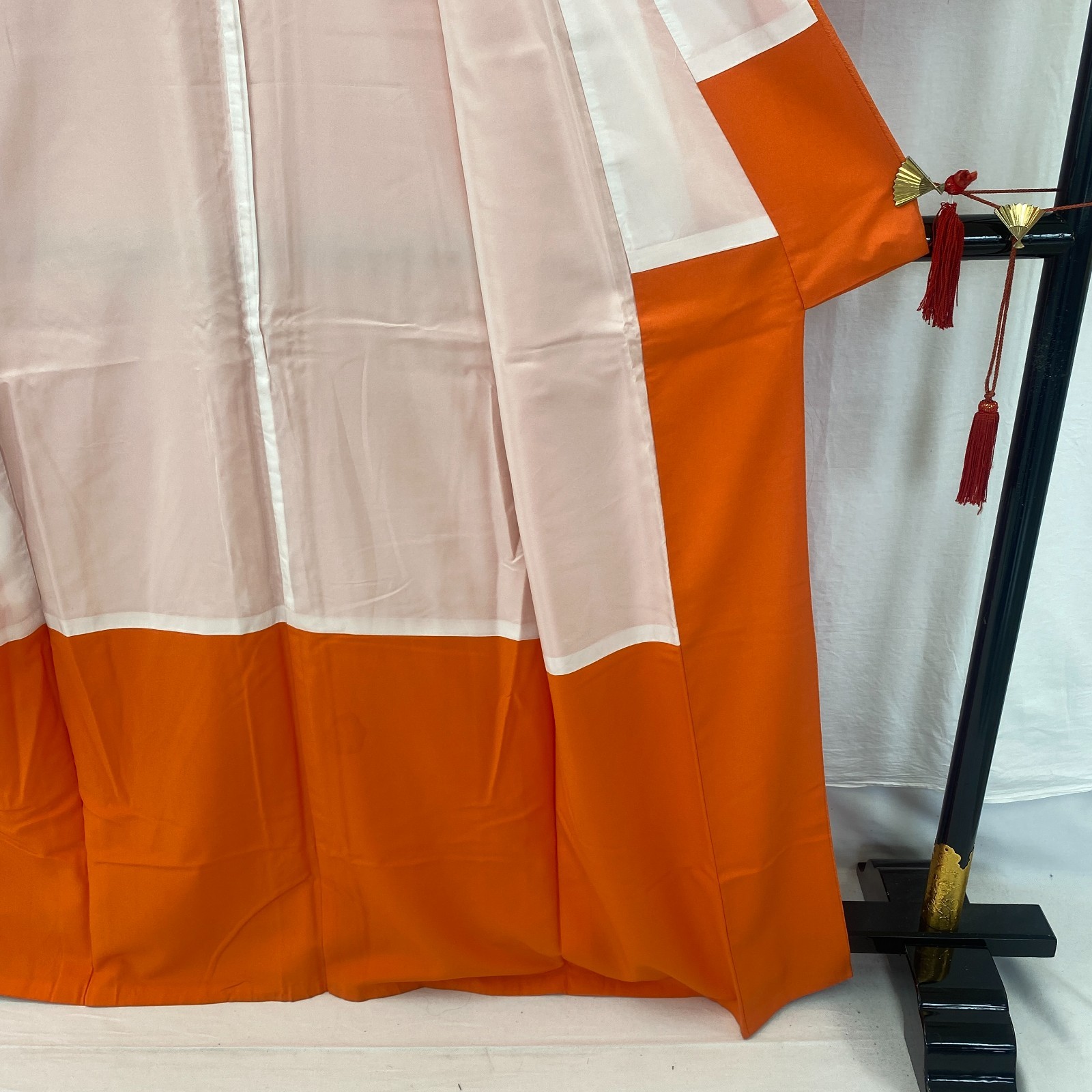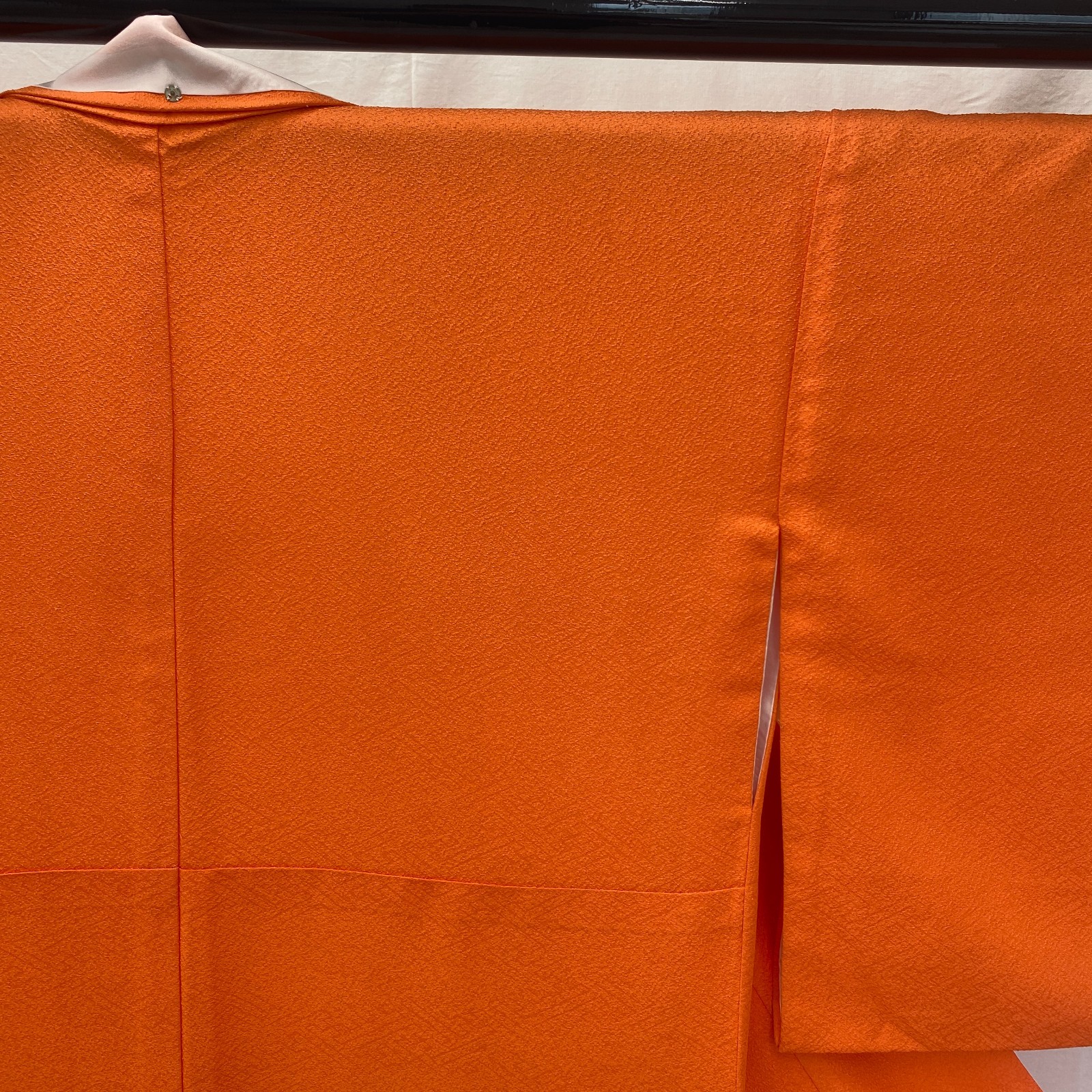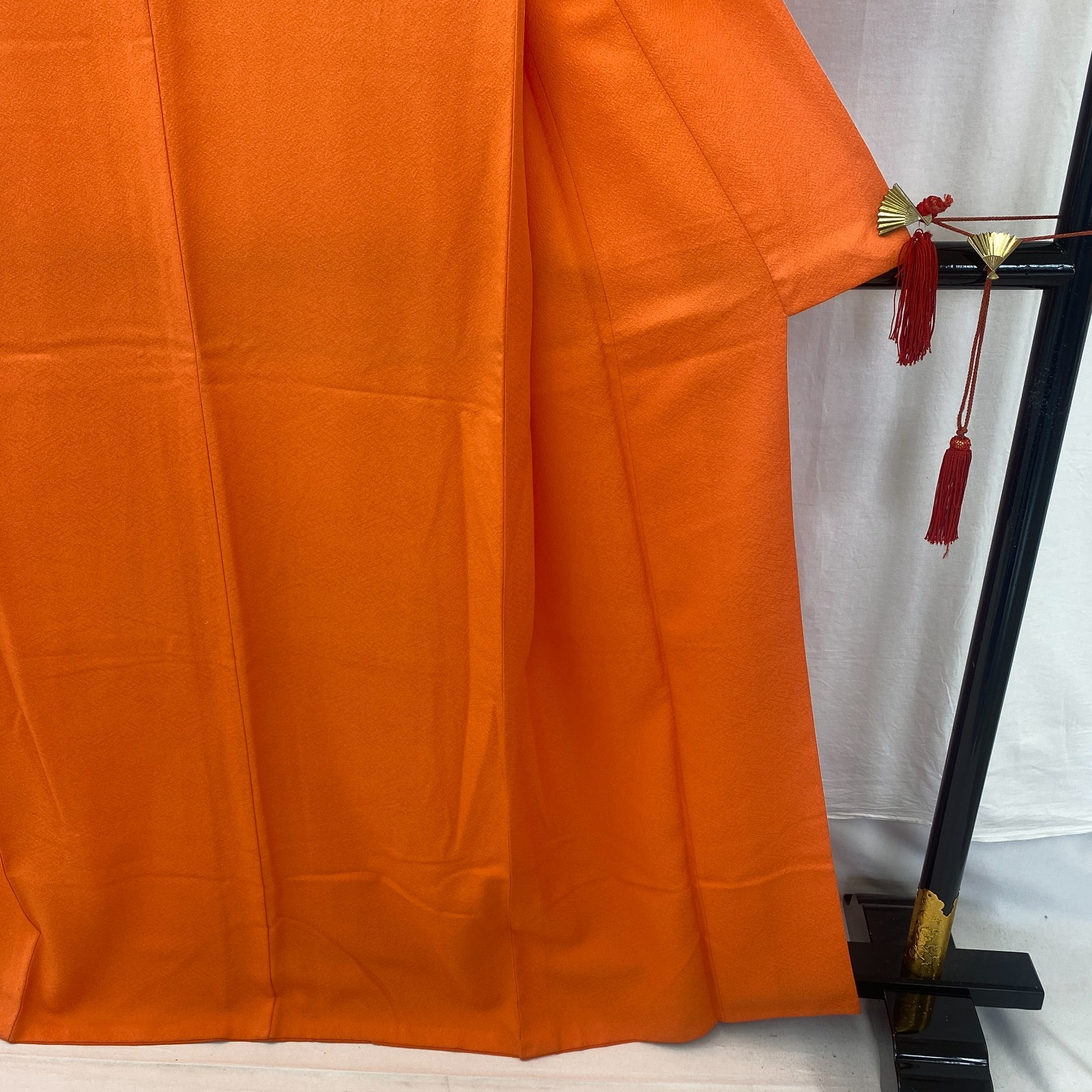 Japanese Vintage Kimono Polyester Orange Traditional Authentic Length 63 in