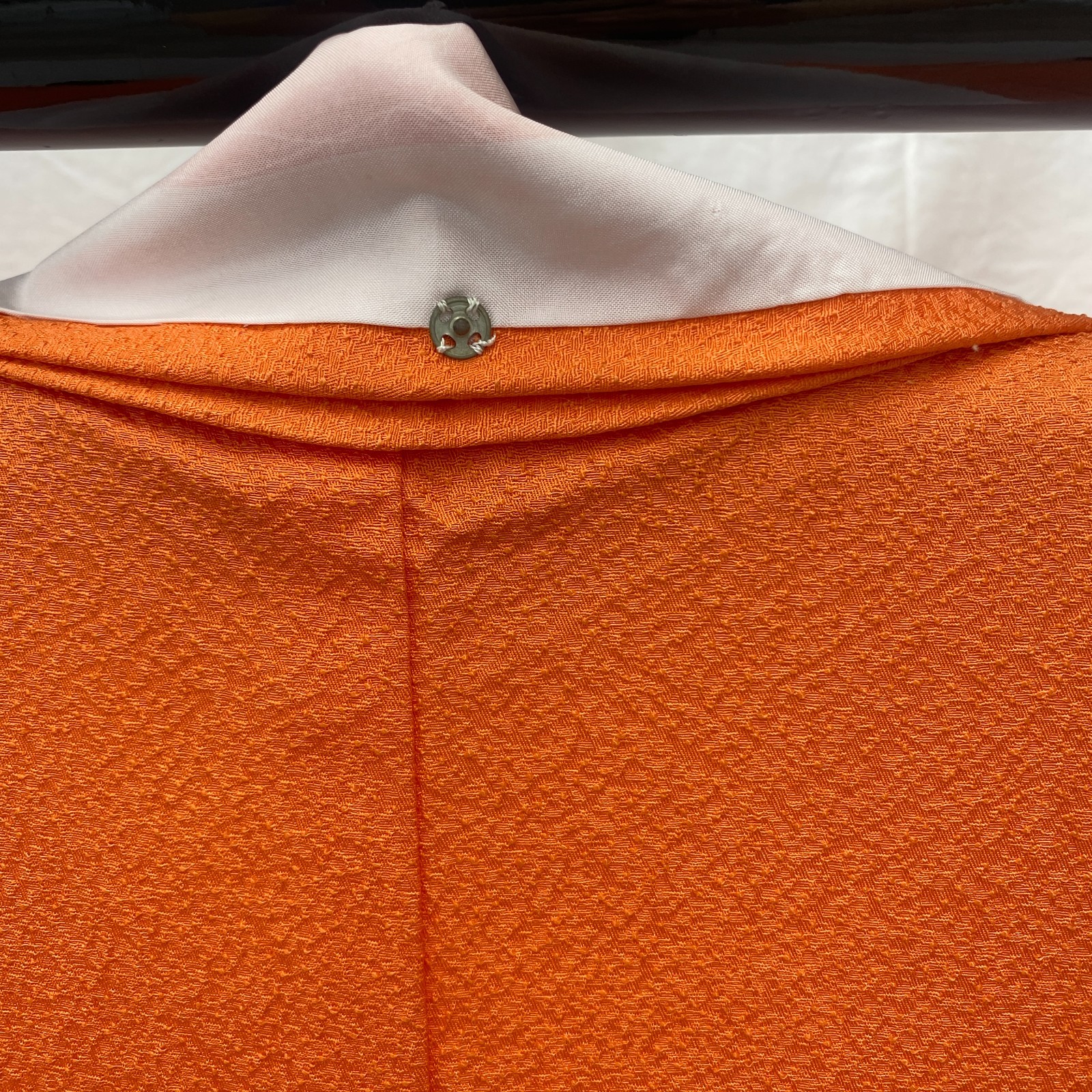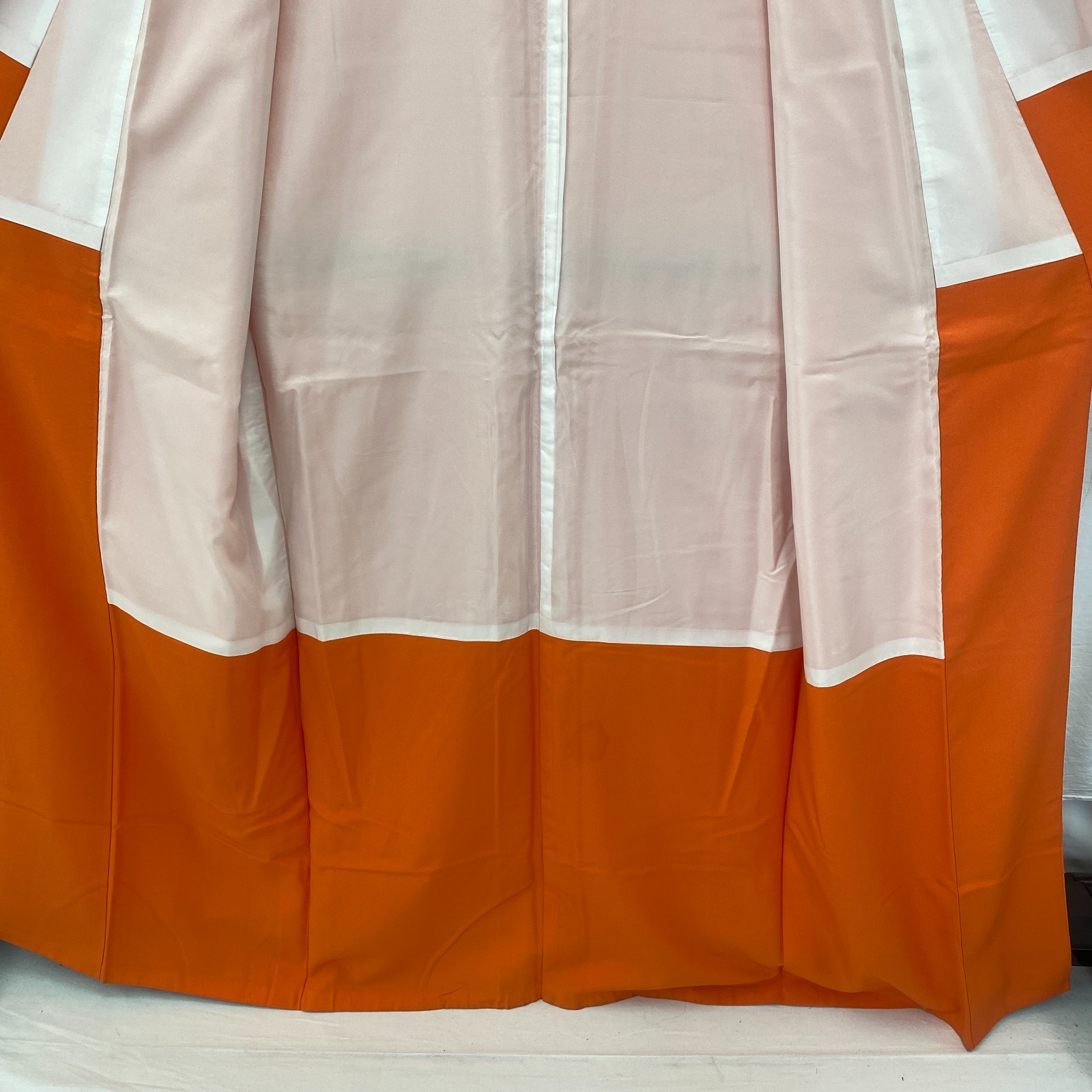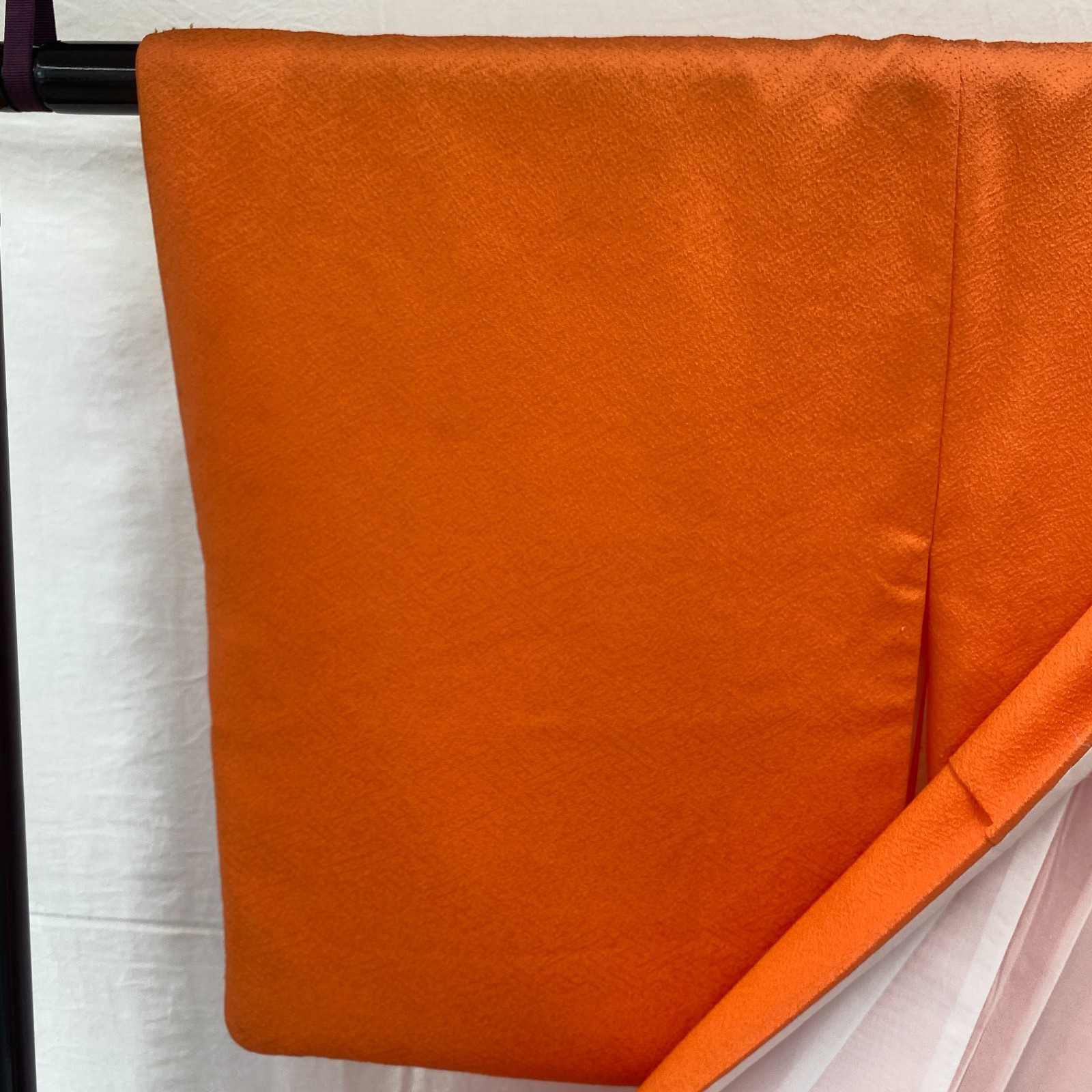 Japanese Vintage Kimono Polyester Orange Traditional Authentic Length 63 in