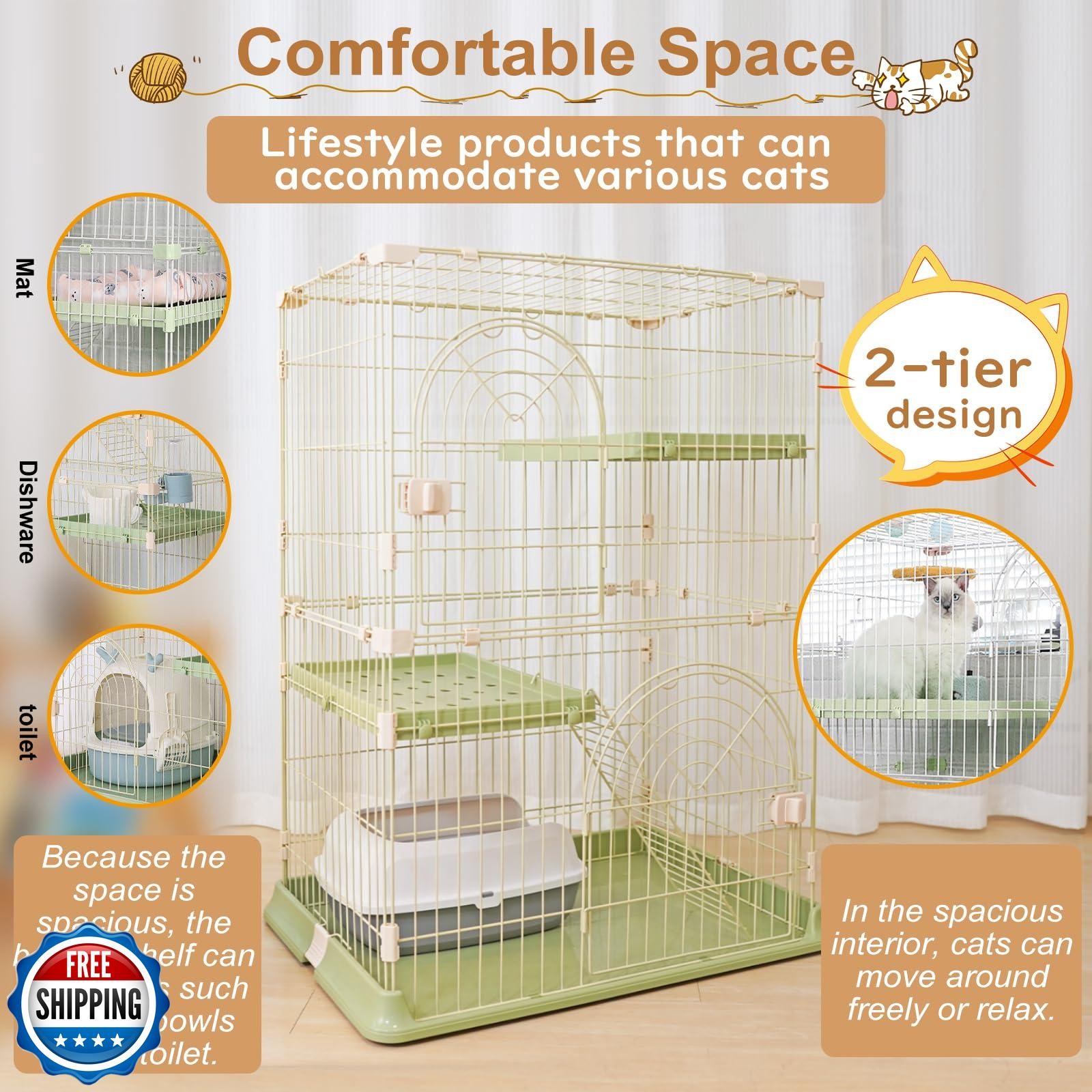 Slim 2/3-Tier Cat Cage for Large Cats Easy Assembly Pet Cage with Wide Door a