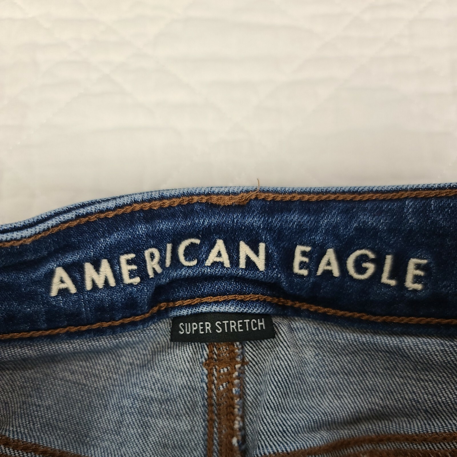 как выглядит American Eagle Super Stretch Blue Skinny Distressed Jeans Super Hi-Rise Size 00 фото