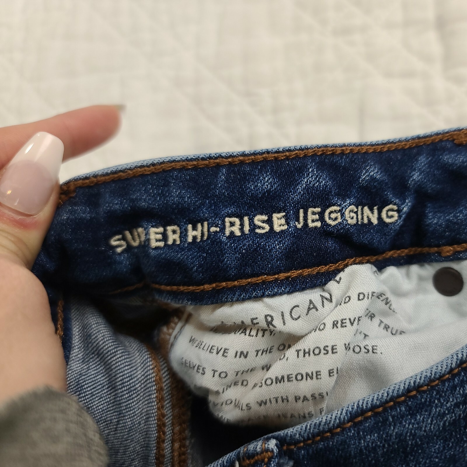 American Eagle Super Stretch Blue Skinny Distressed Jeans Super Hi-Rise Size 00