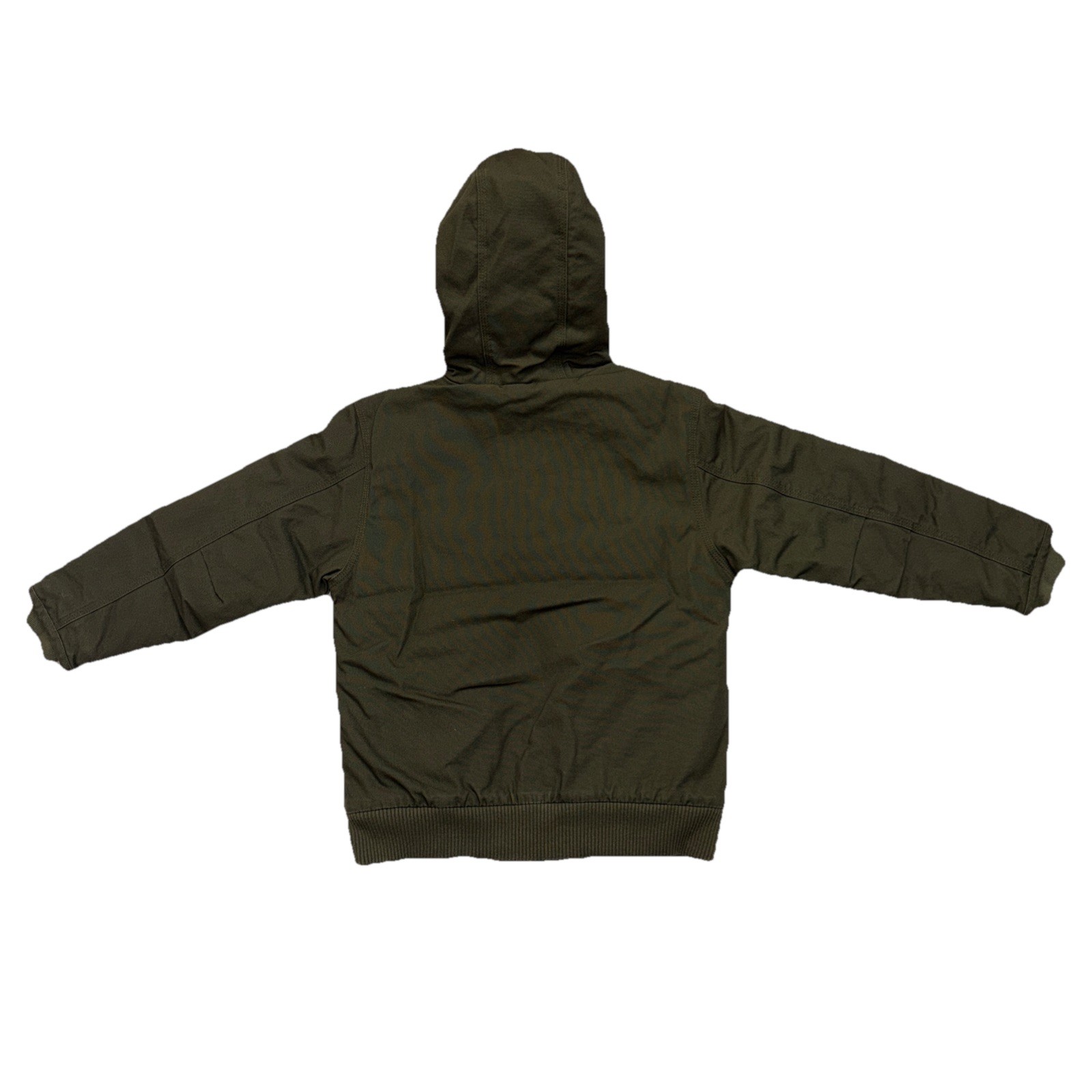 Carhartt Boys OJ8545B Olive Green Canvas Quilted Lined Hoodie Jacket Sz S 7/8