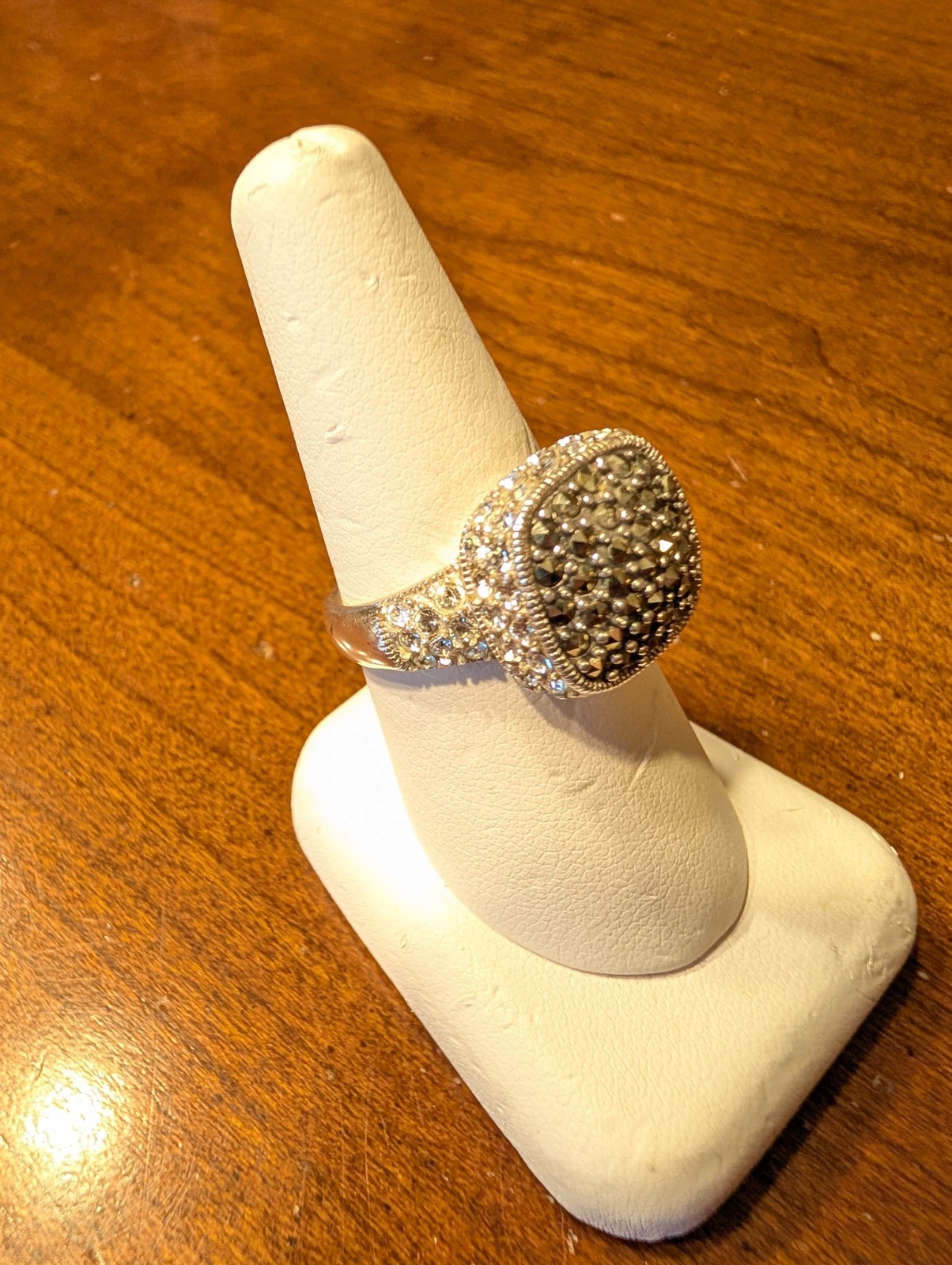 как выглядит Sterling Silver 925 Signed Marcasite Crystal Cocktail Ring Size 9.25 фото