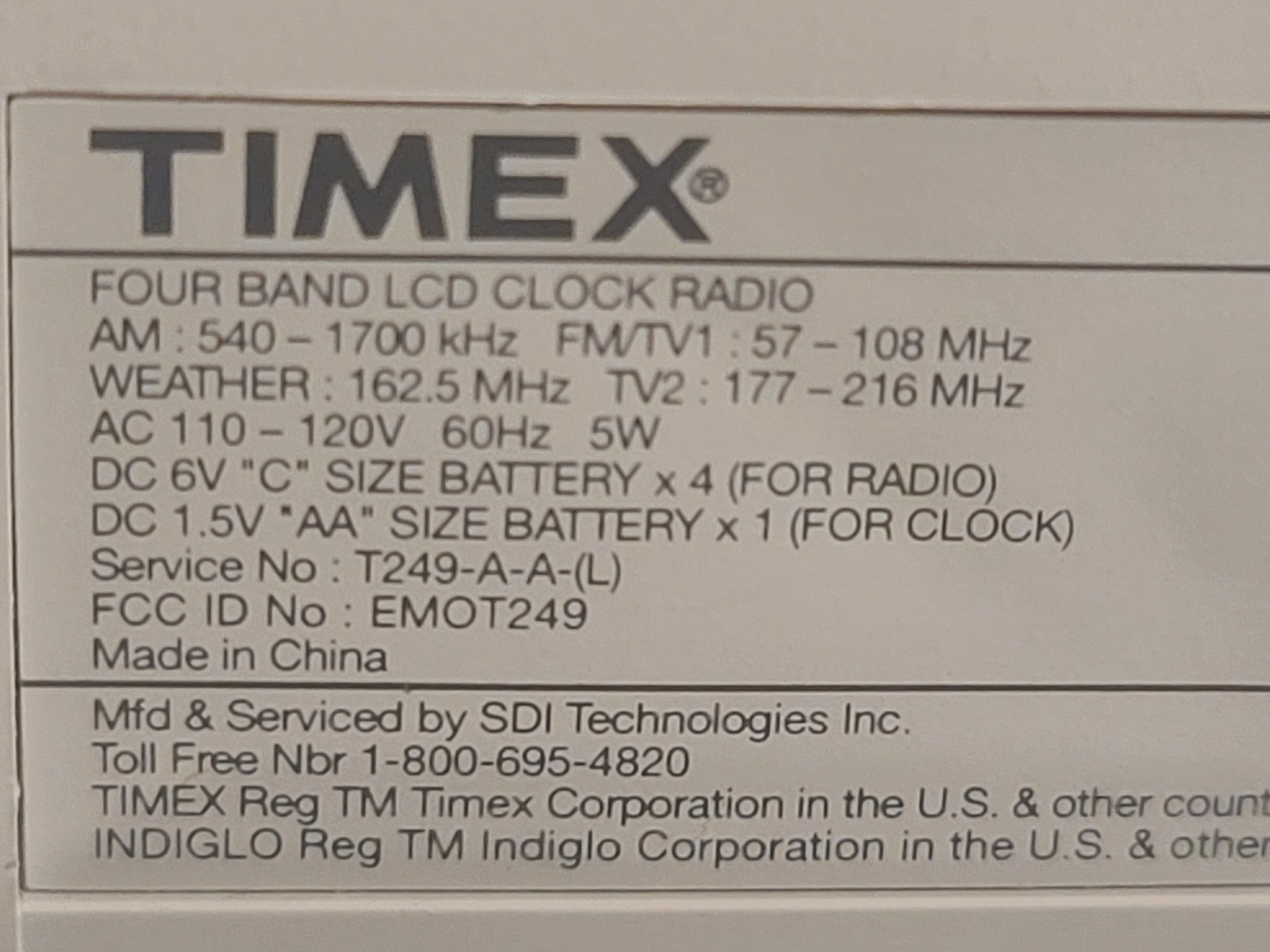 NEW IN BOX Timex Indiglo Lighted Portable 4 Band Weather Clock Radio