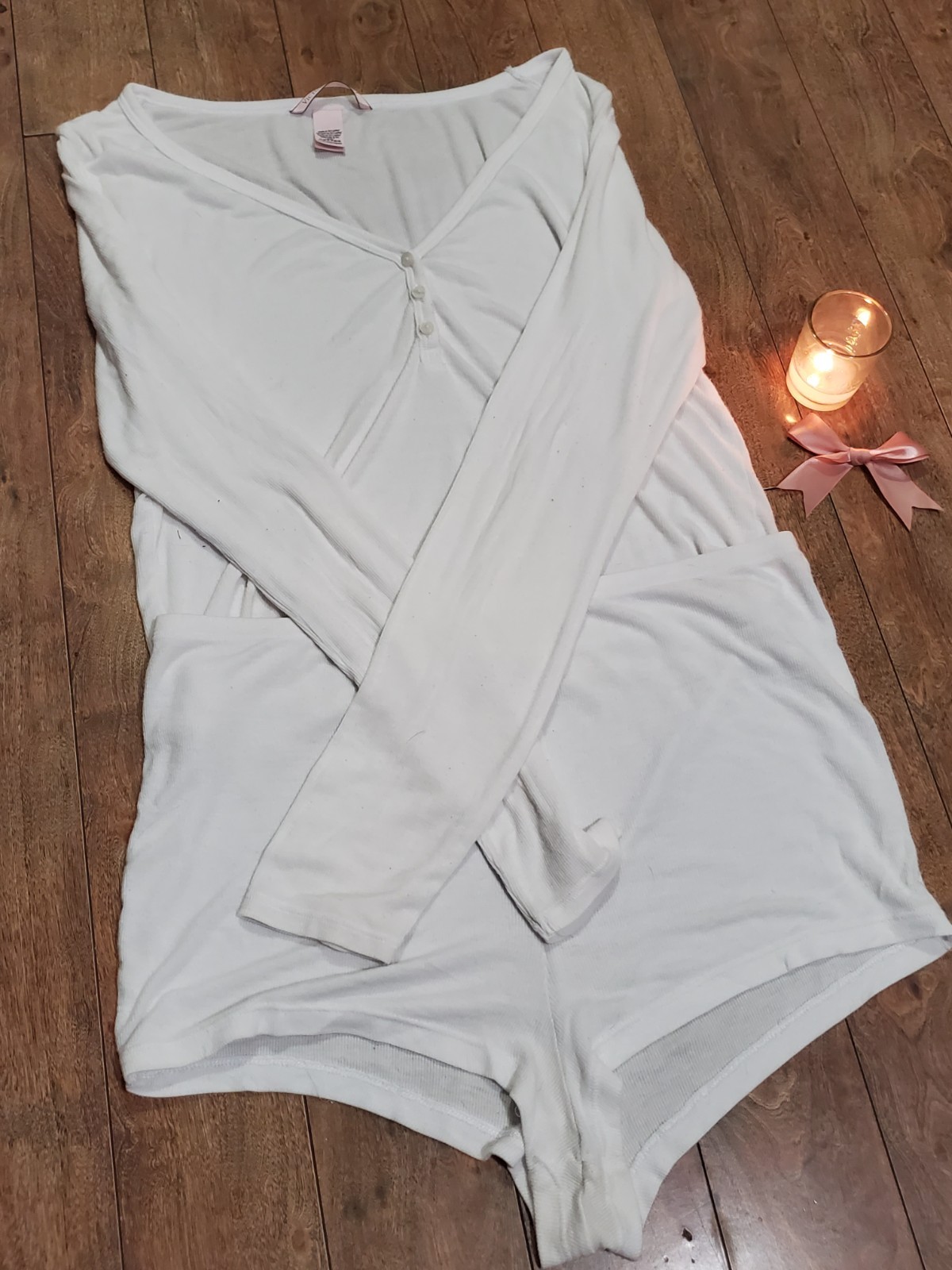 ViCTORiA'S SECRET 2PC WHiTE STRETCHY MODAL PAJAMA LOUNGE SET TOP SHORTS