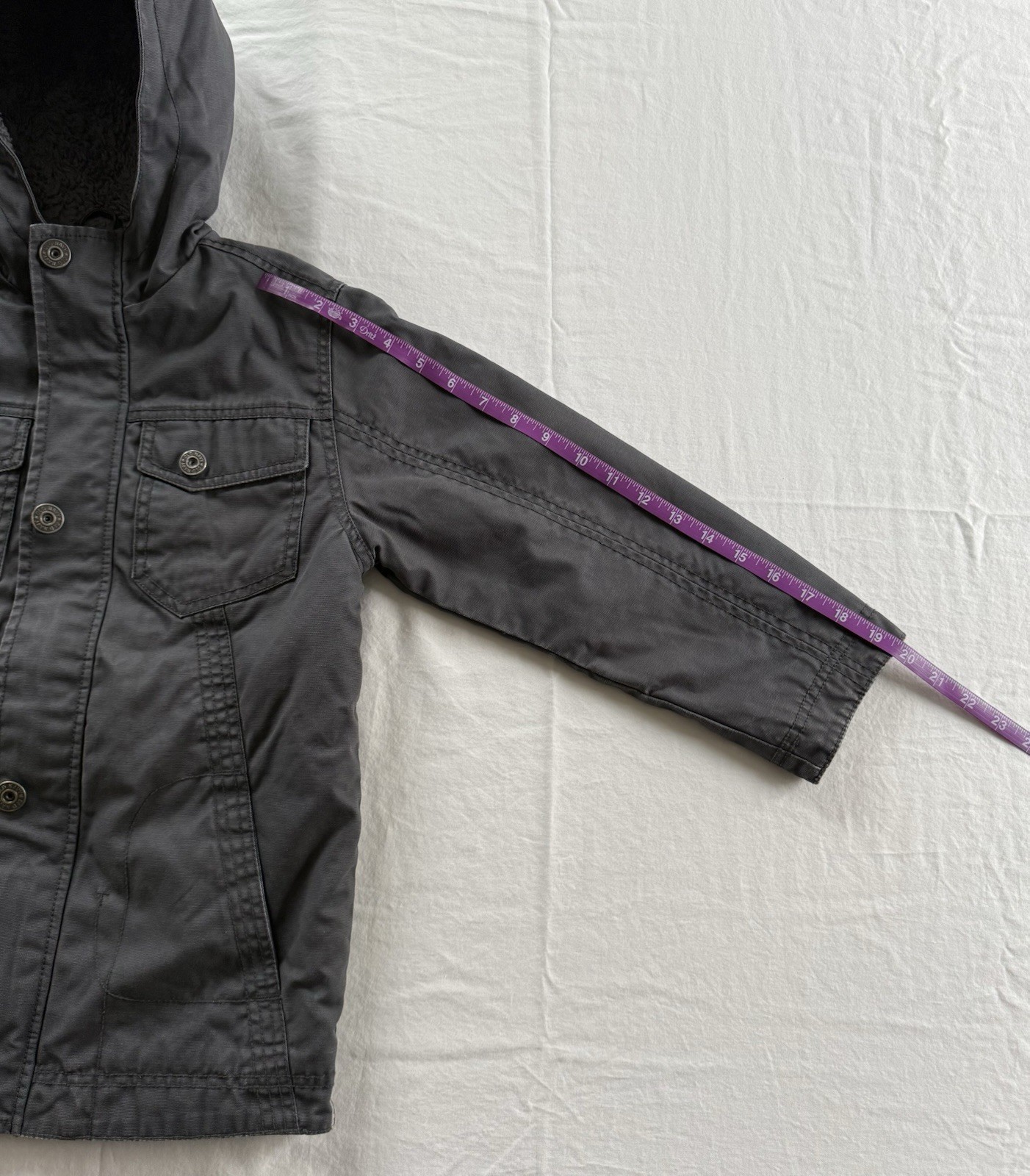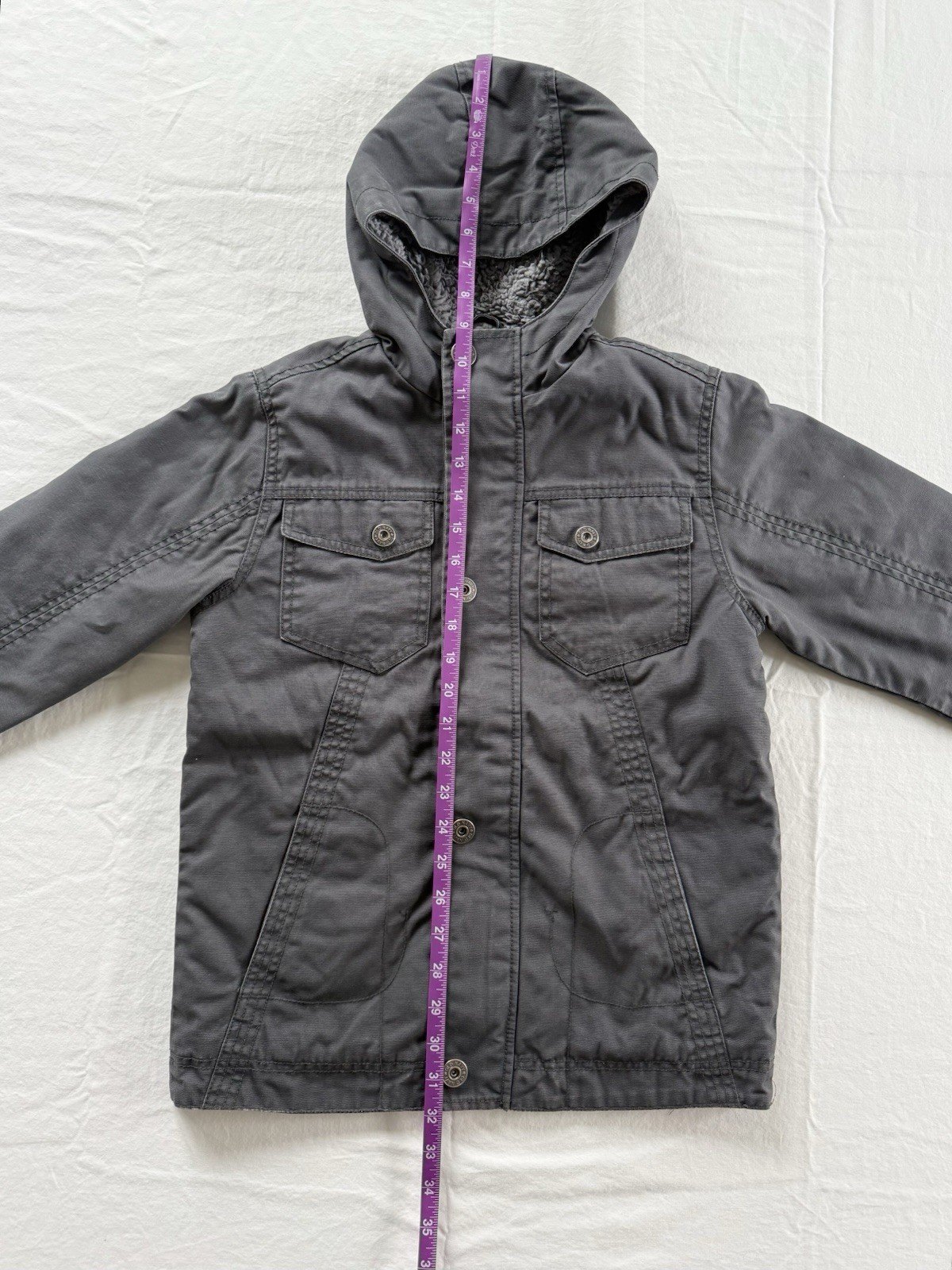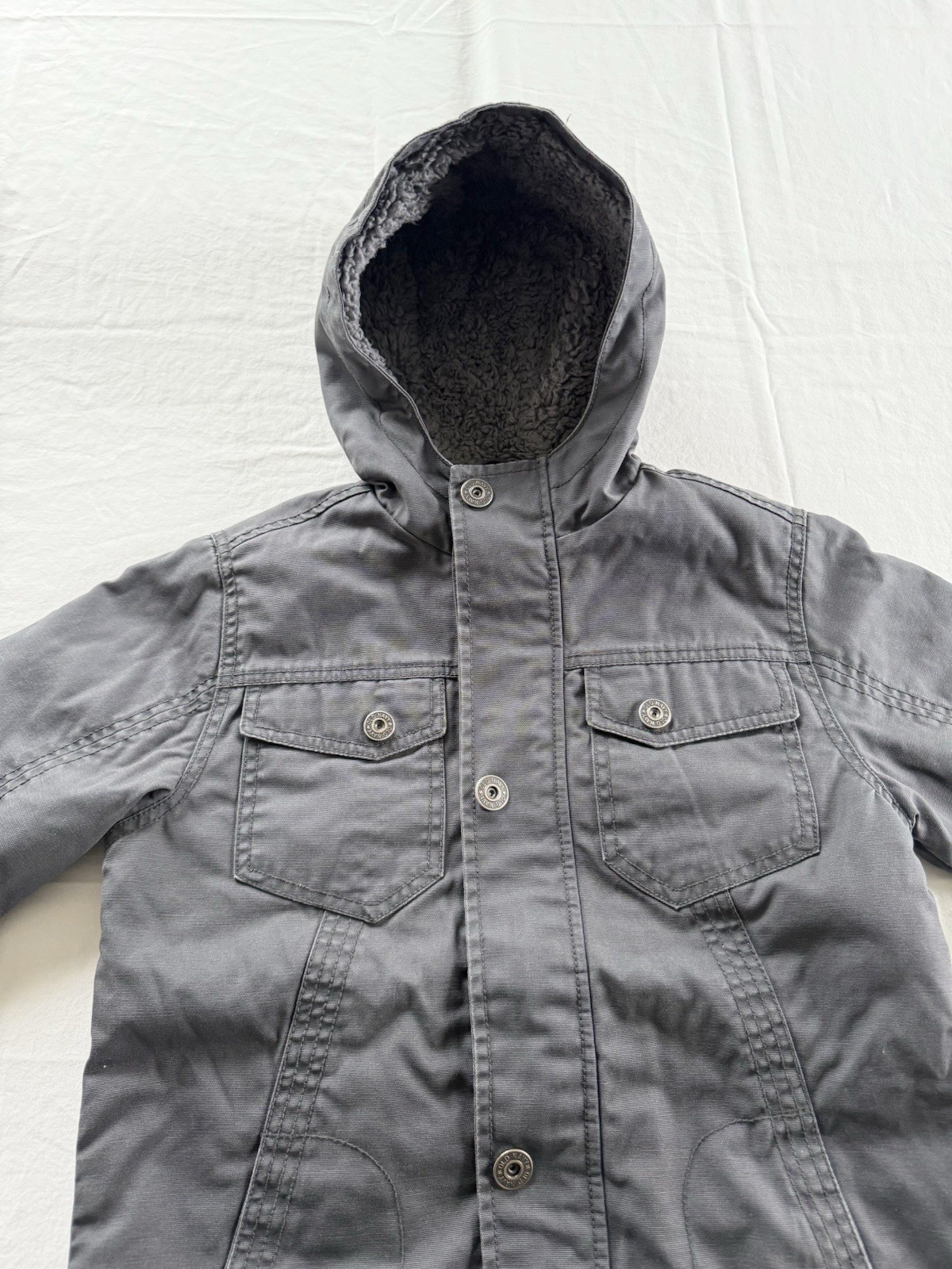 как выглядит Boys Size S 6-7 Old Navy Dark Gray Cotton Sherpa Lined Hooded Winter Jacket фото