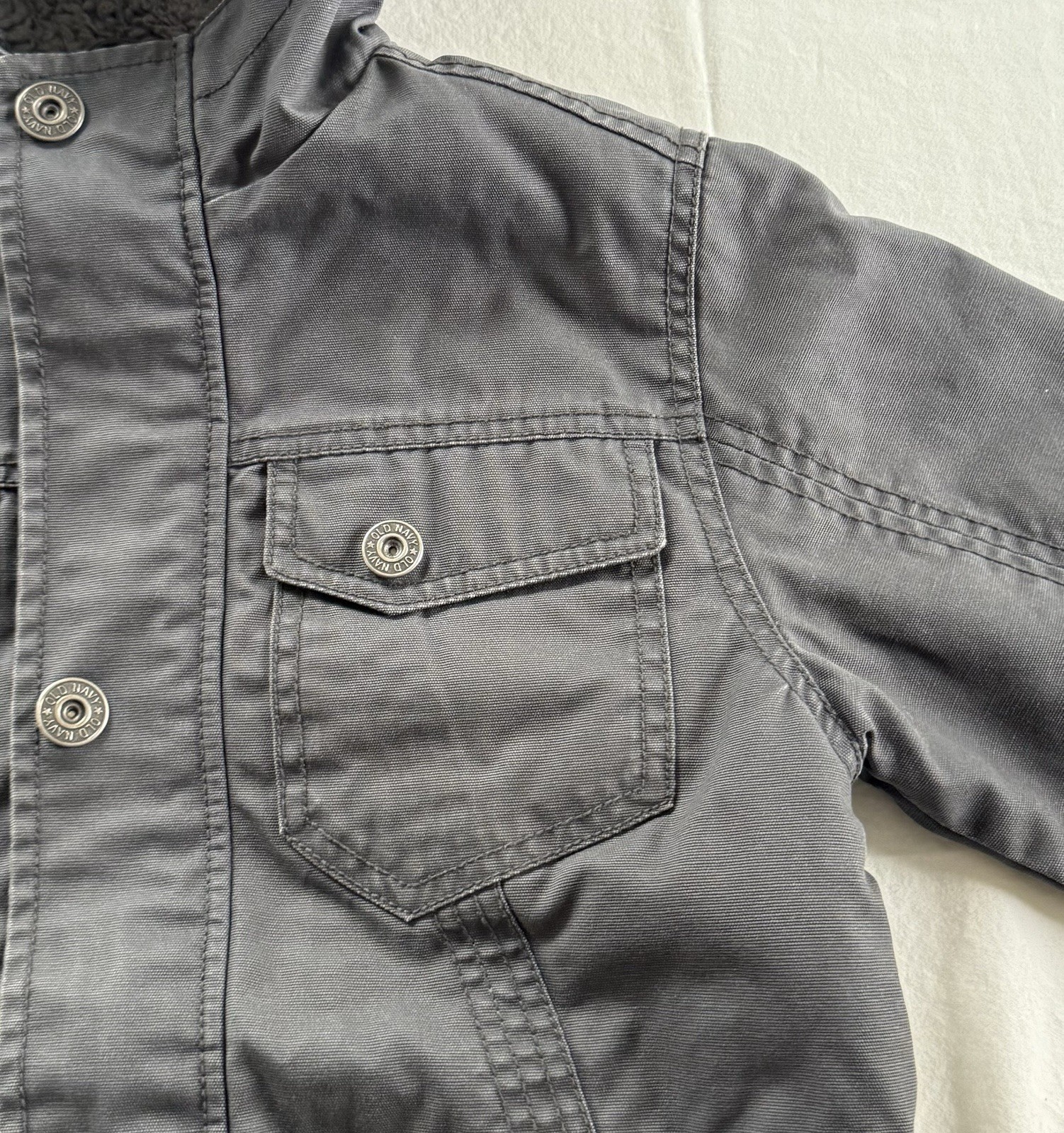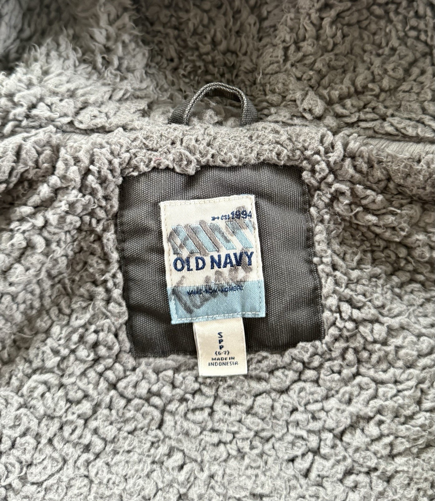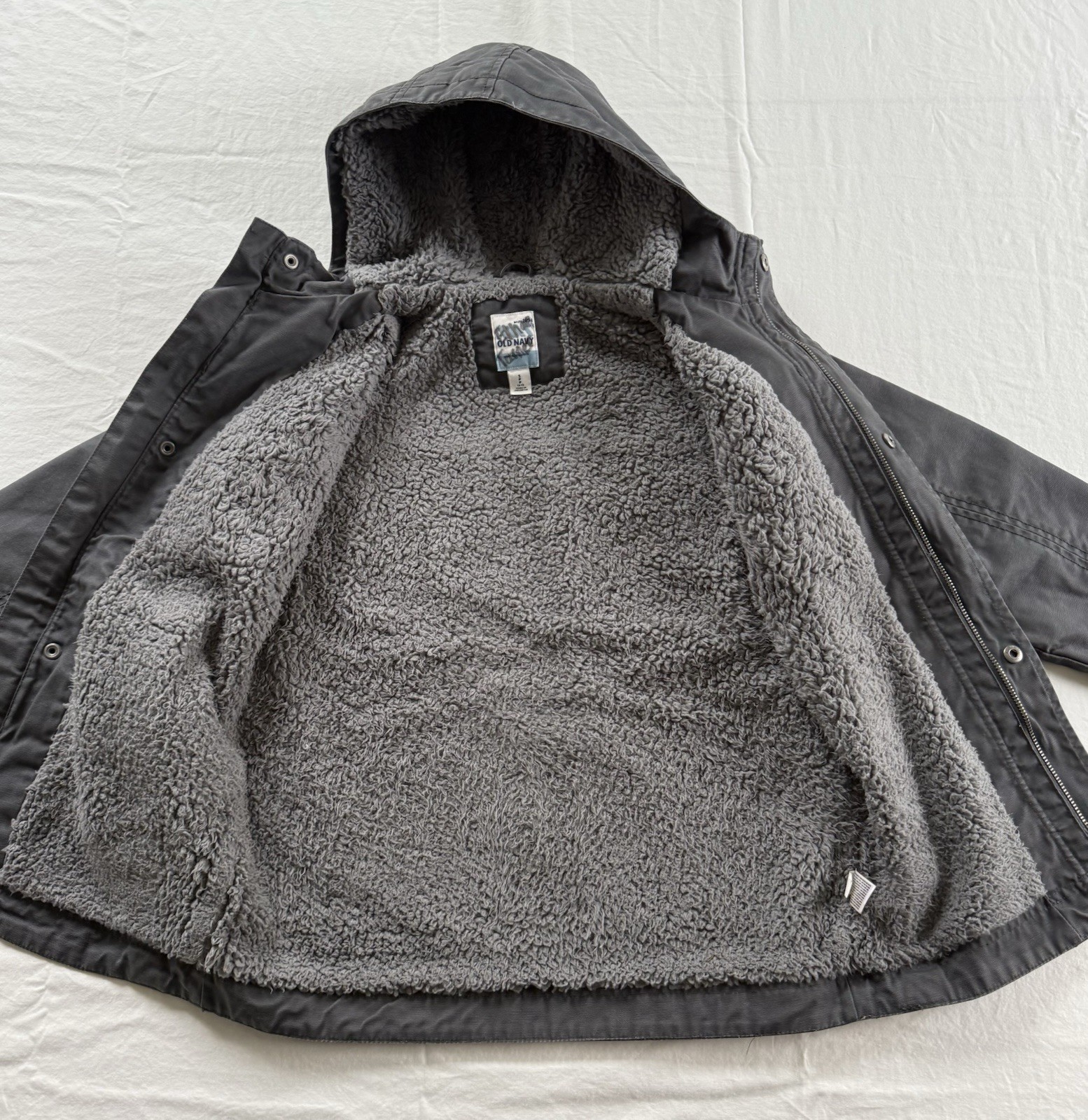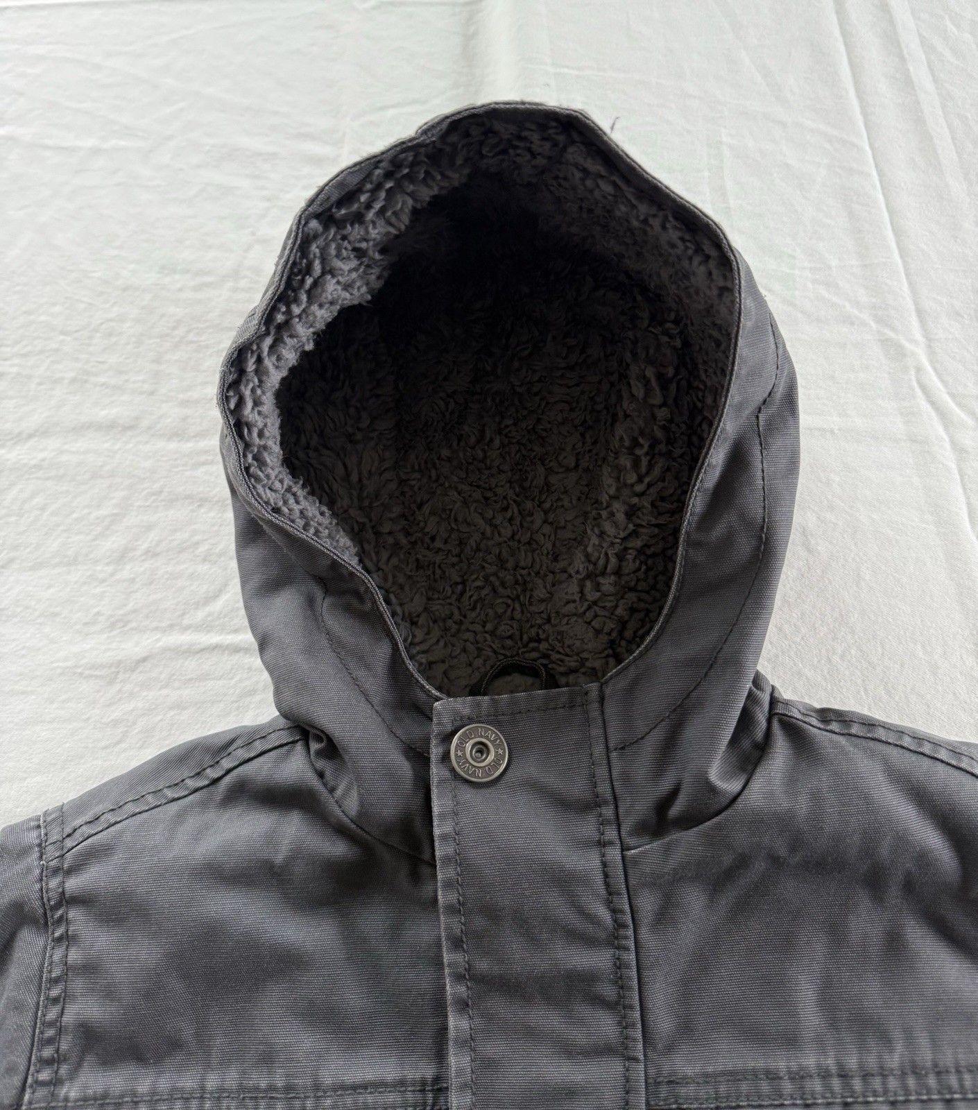 Boys Size S 6-7 Old Navy Dark Gray Cotton Sherpa Lined Hooded Winter Jacket