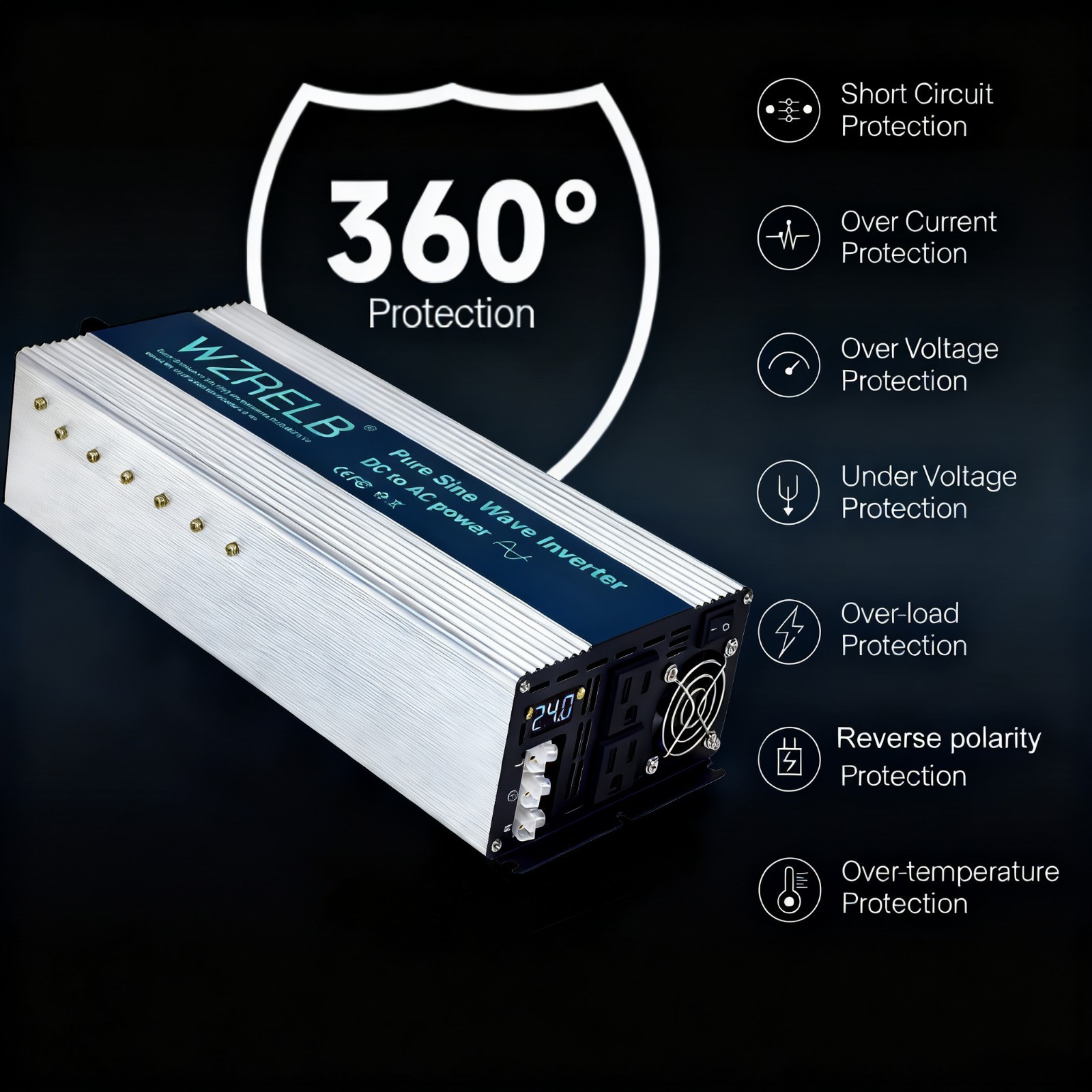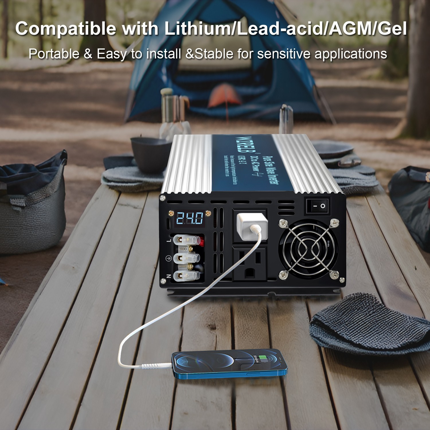 WZRELB 3500W 24VDC to 120VAC Pure Sine Wave Power Inverter RV car home camp new