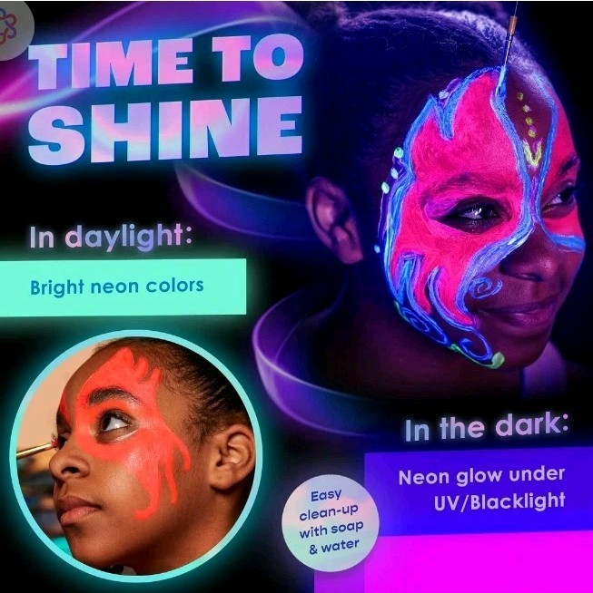 как выглядит Neon Nights NEW UV Body Face Paint 2 Sets Of 8 Blacklight Glow Makeup 0.7 Fl Oz фото