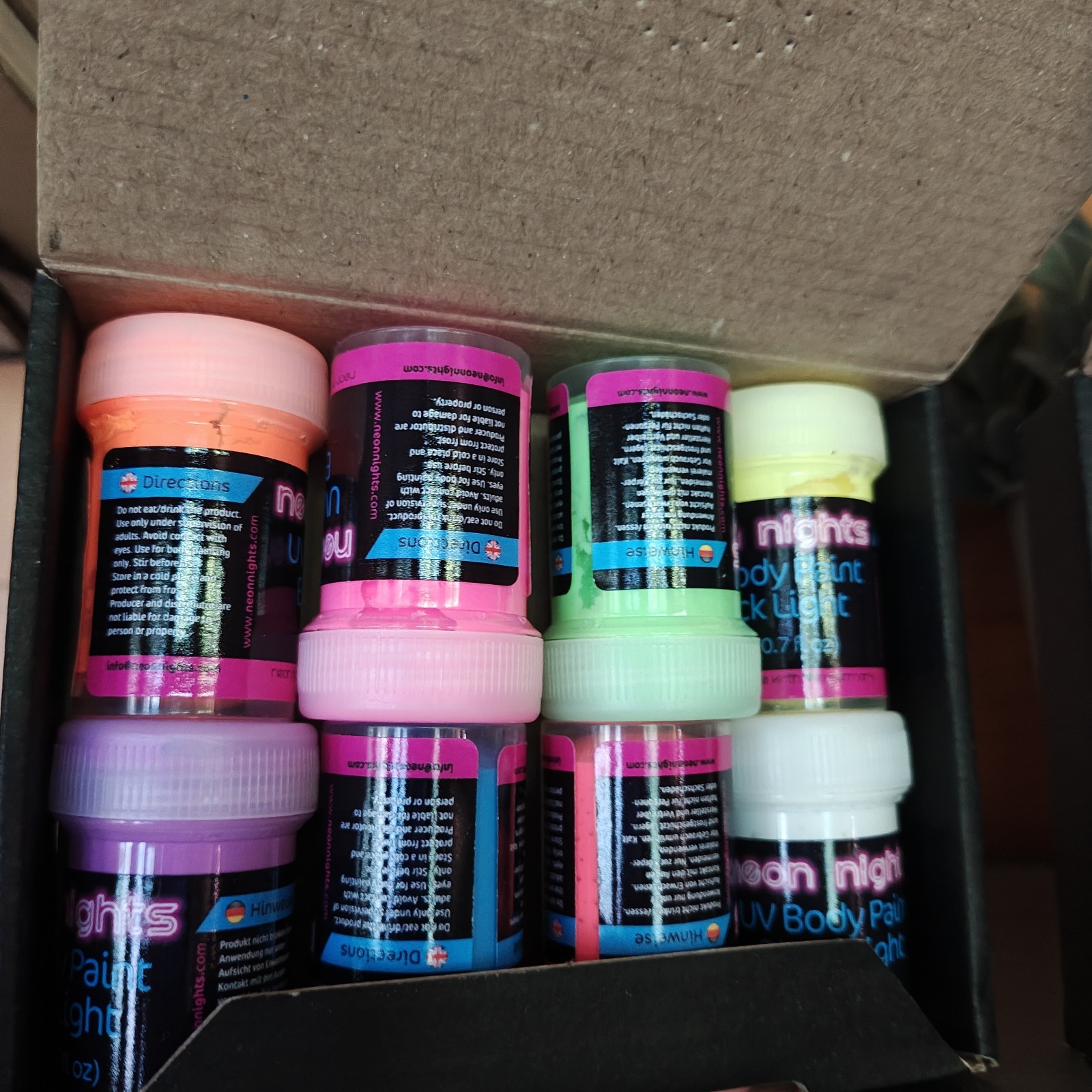 Neon Nights NEW UV Body Face Paint 2 Sets Of 8 Blacklight Glow Makeup 0.7 Fl Oz