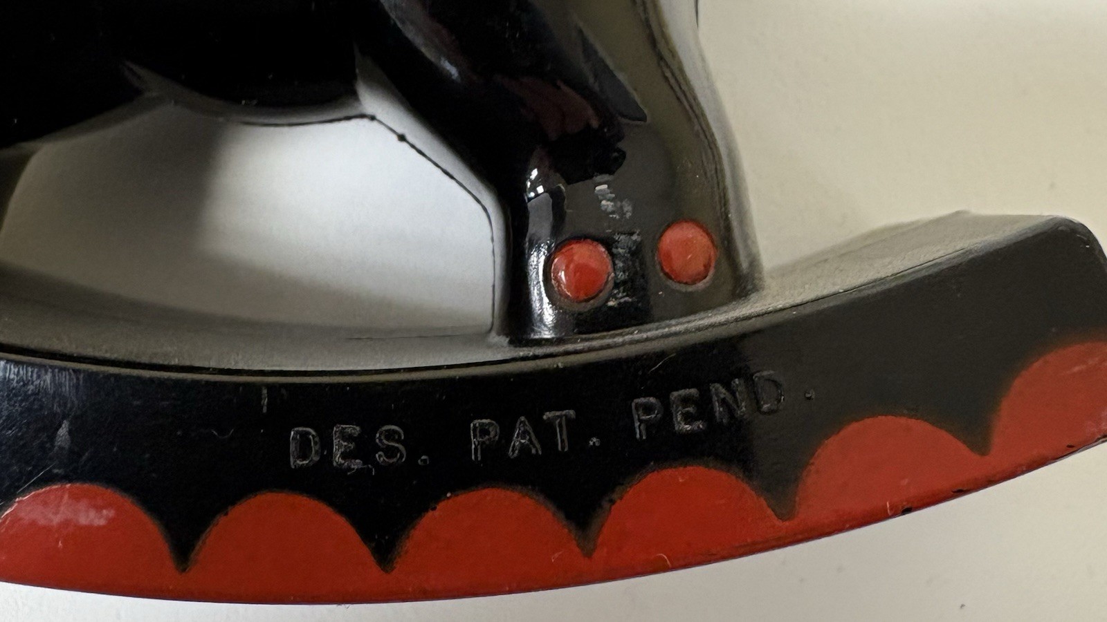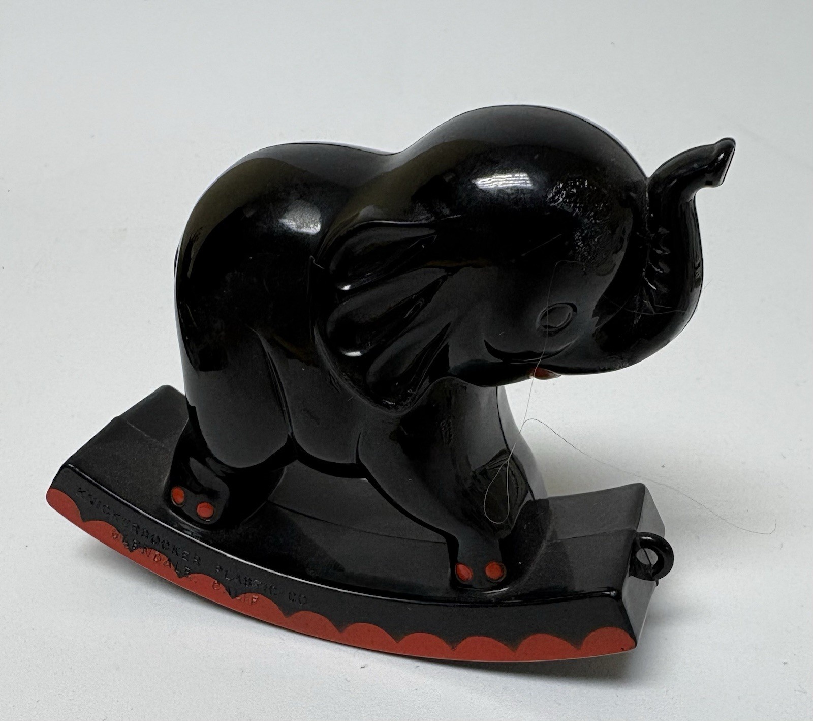 1950 s RARE Black and Red Knickerbocker Baby Rattle Elephant Celluloid