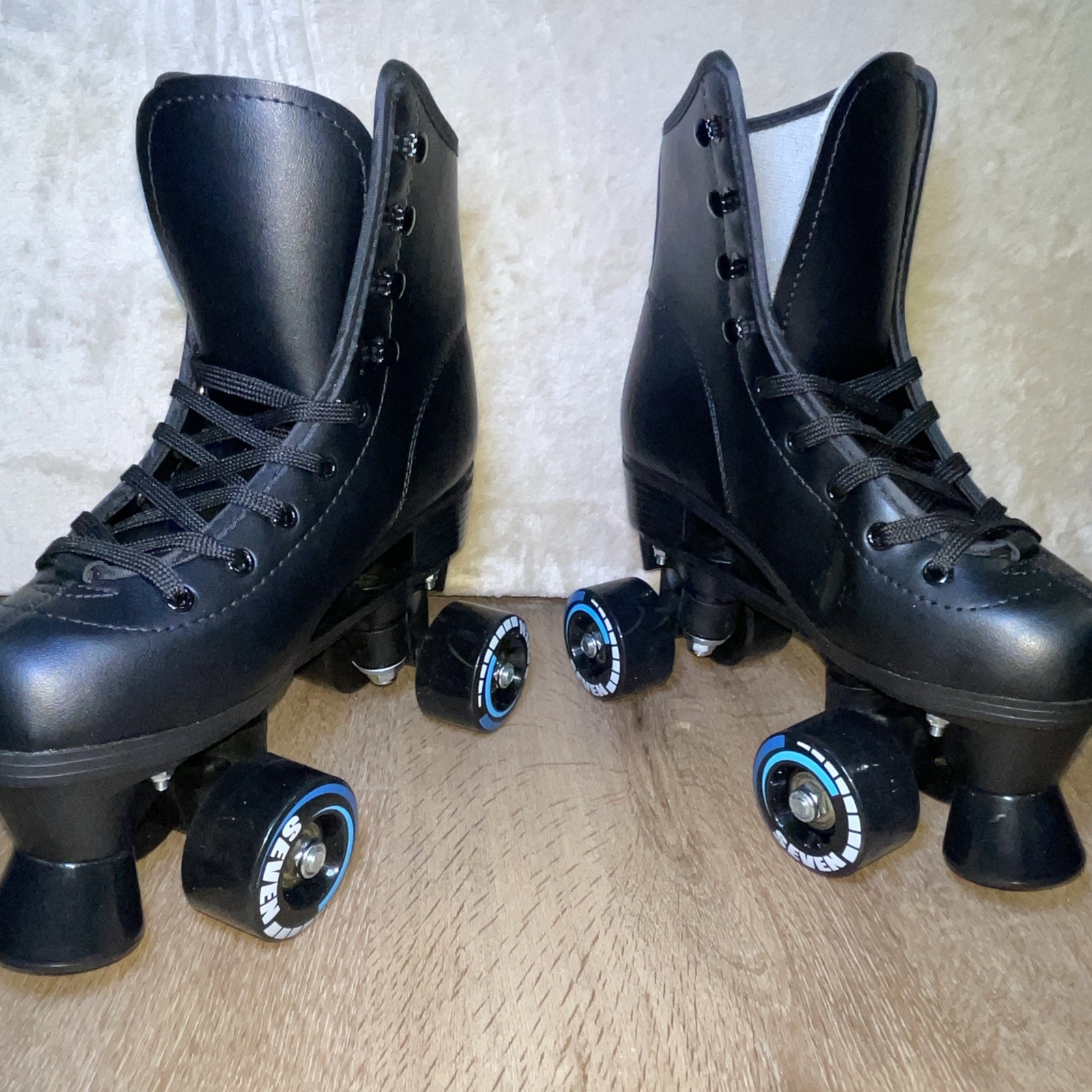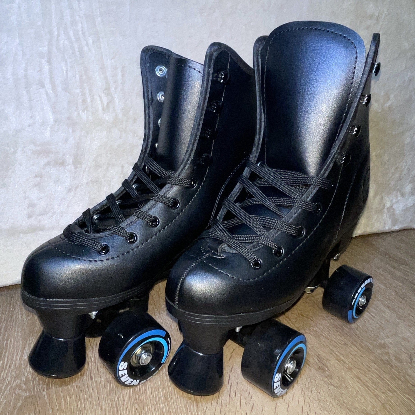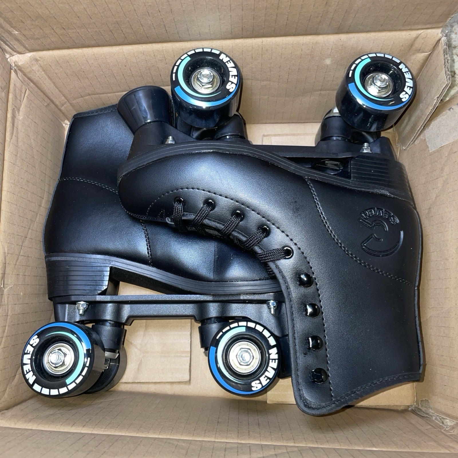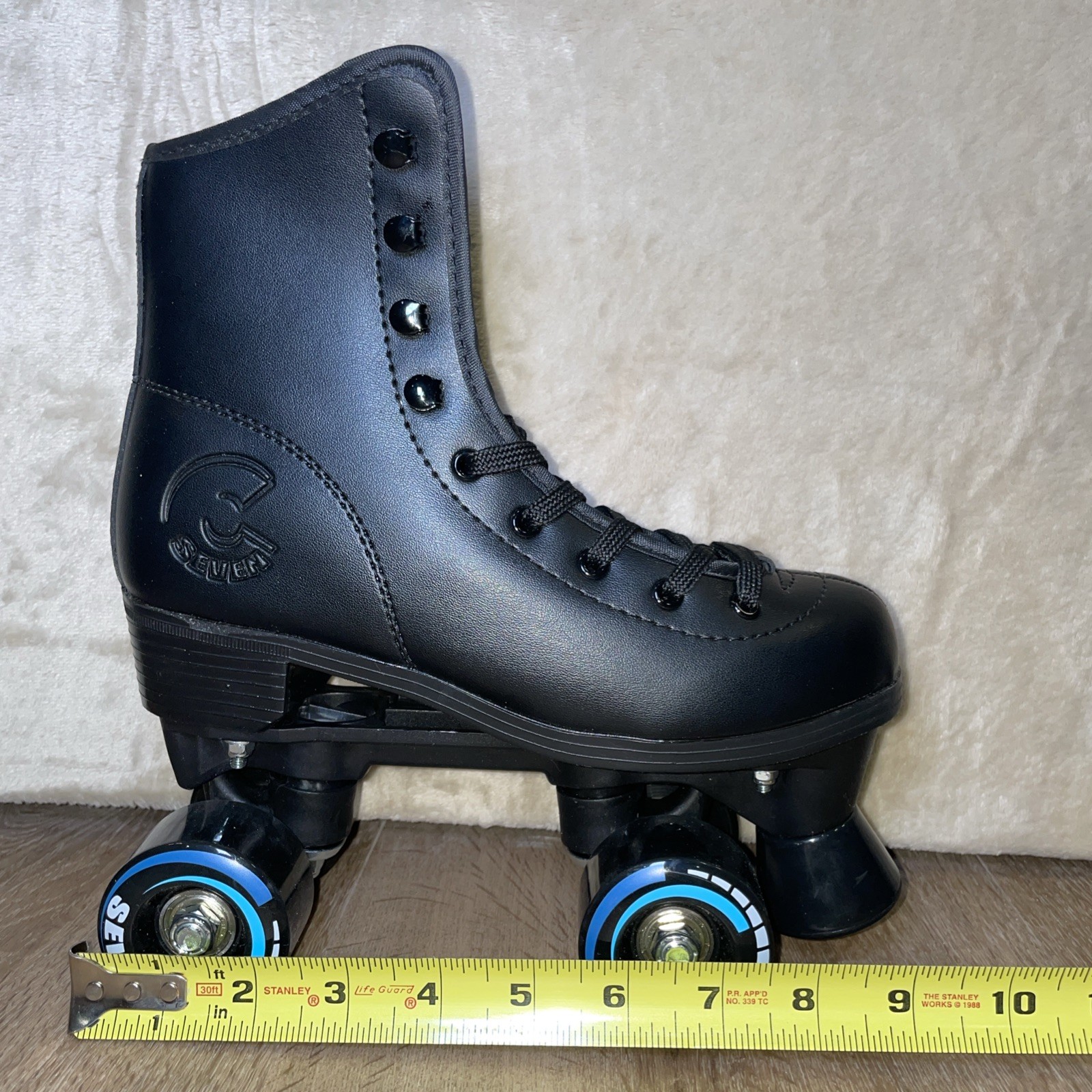 C SEVEN Retro Design Black Vixen Quad Roller Skates Sz Youth 4 LED Wheels NEW