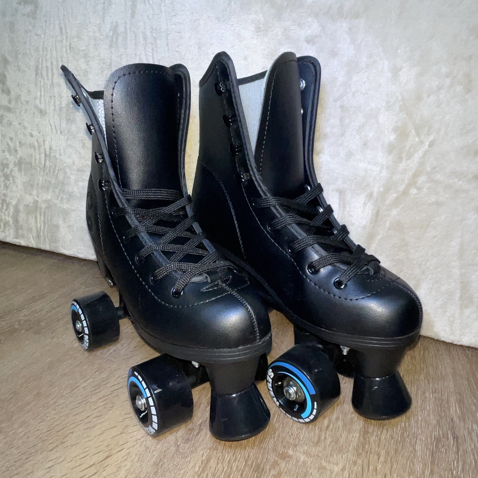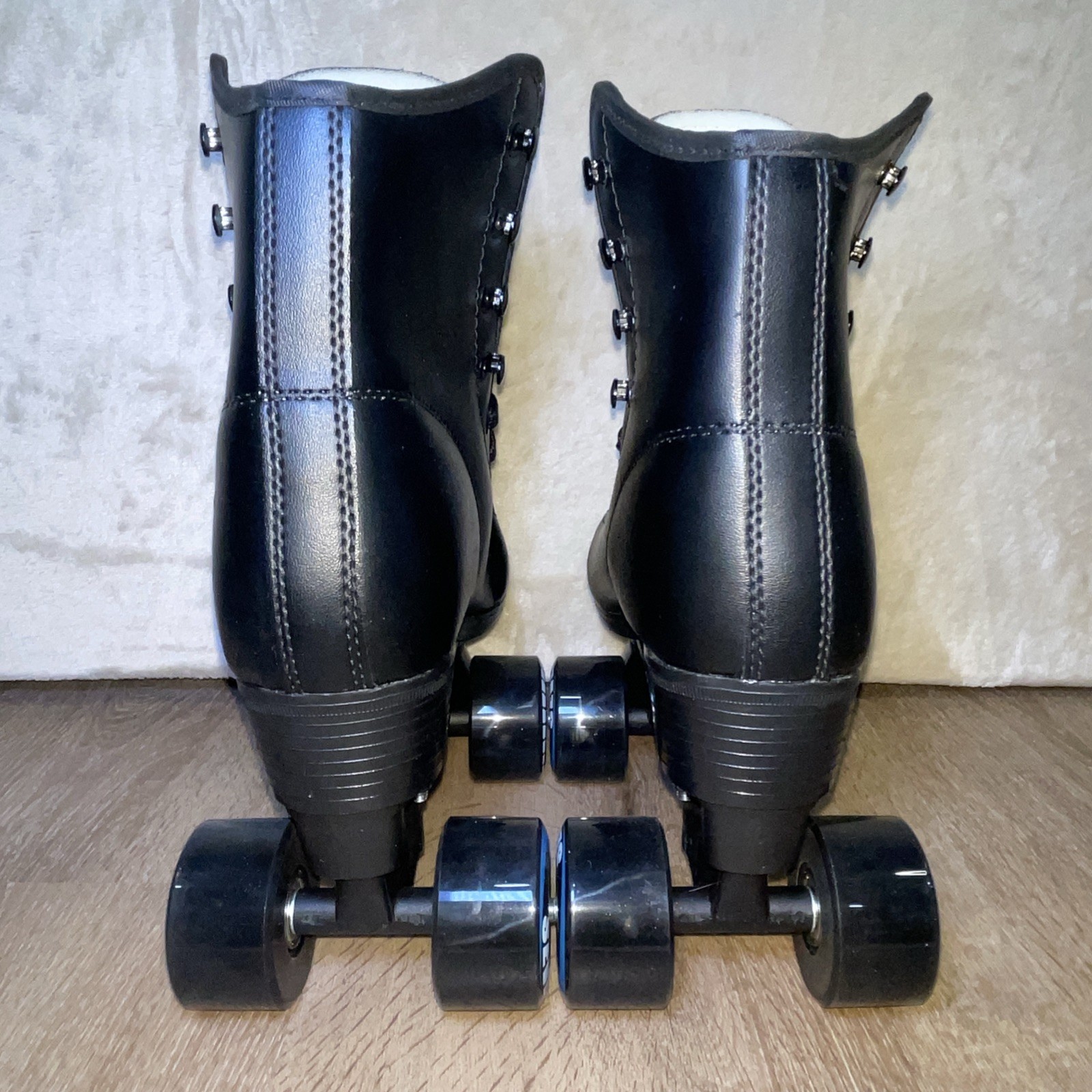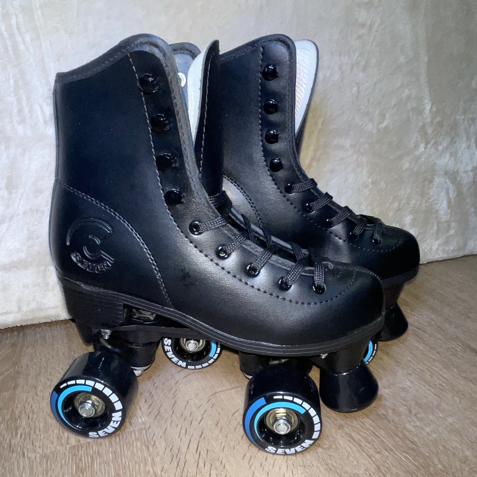 как выглядит C SEVEN Retro Design Black Vixen Quad Roller Skates Sz Youth 4 LED Wheels NEW фото