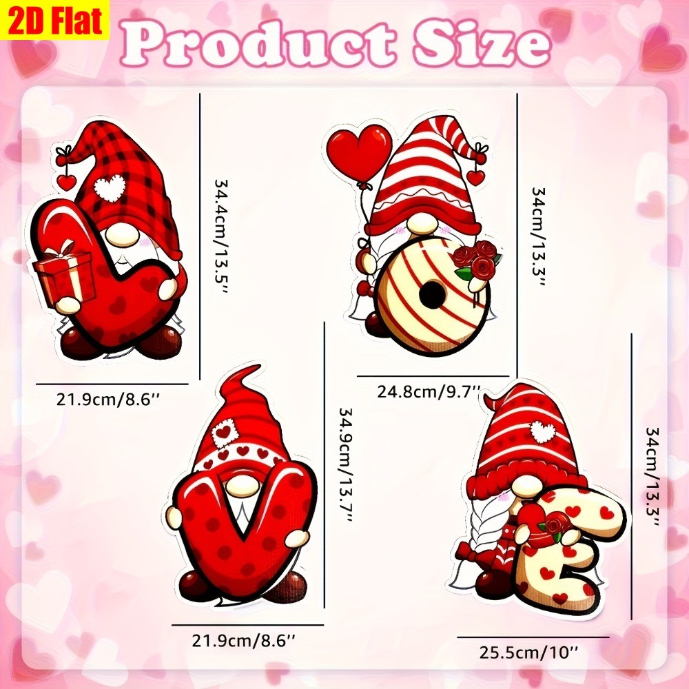 2D Flat 4pcs Valentine's Day LOVE Yard Sign Garden Stakes Love Gnomes Decoration