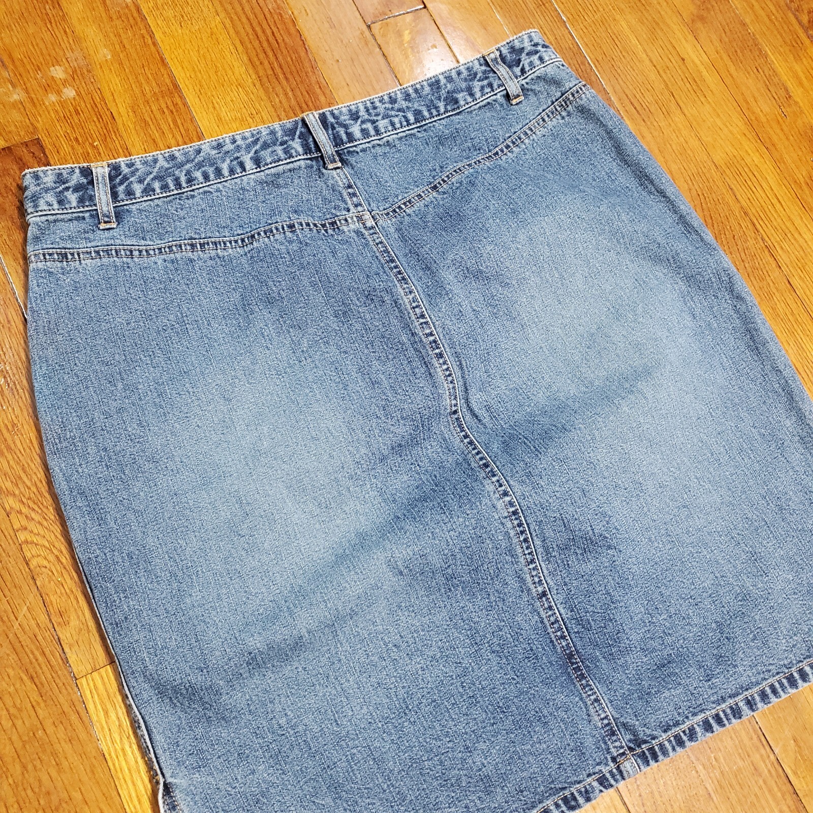 Vintage Y2K Old Navy High Rise Cargo Denim Skirt Size 14 Blue Mid Length Casual