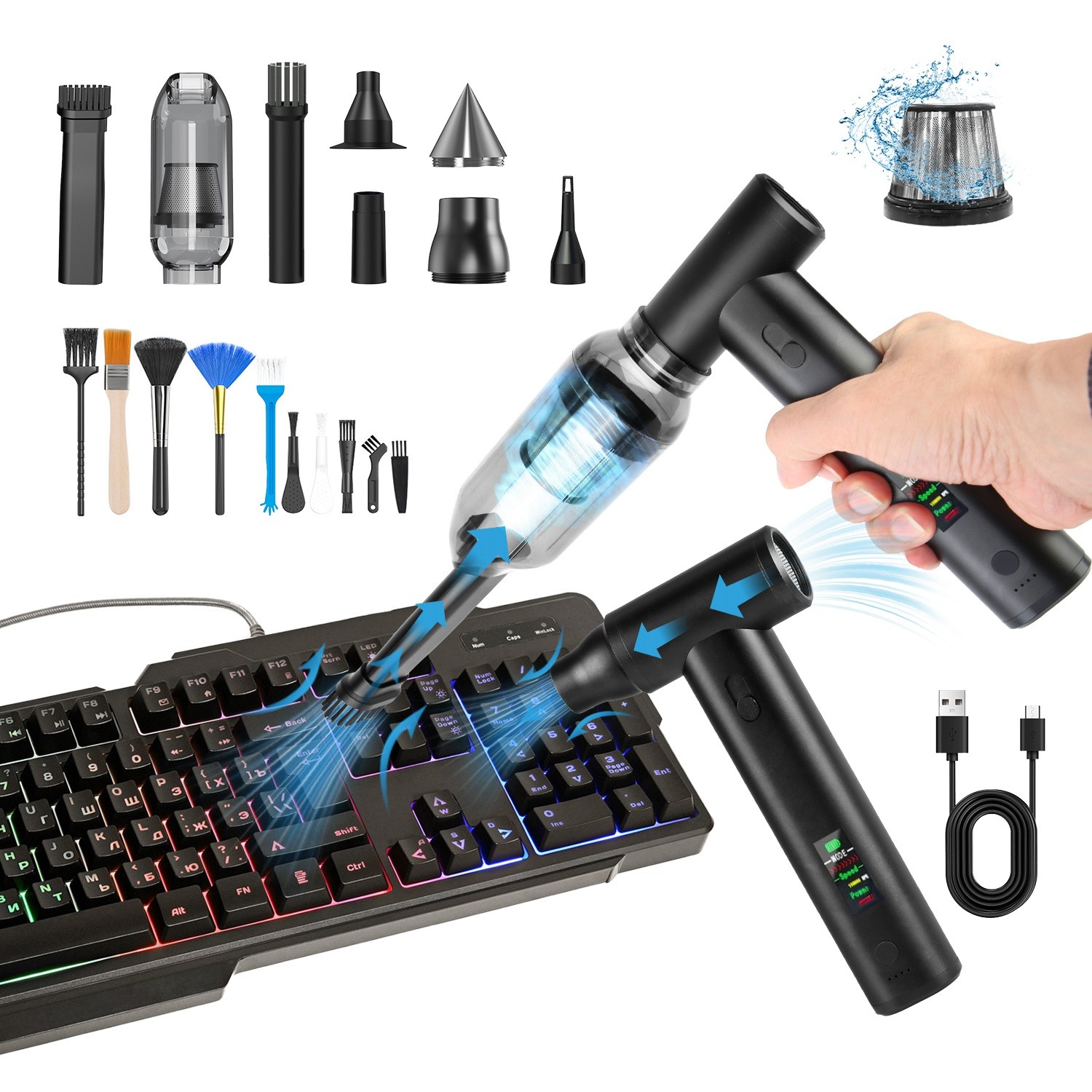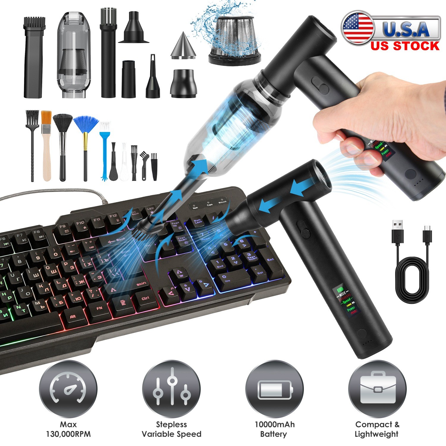 Powerful Aluminum Cordless Compressed Air Duster Blower Vacuum Cleaner Kits