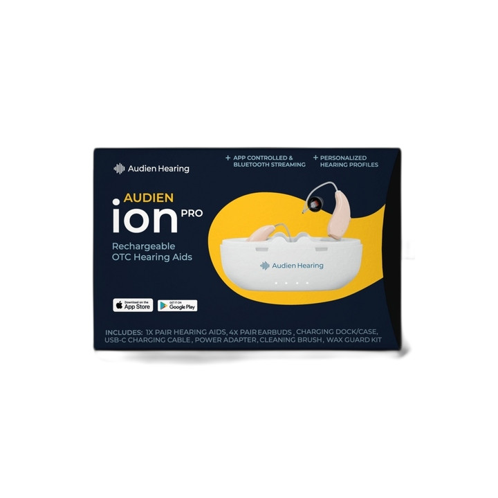Audien Ion Pro Rechargeable Bluetooth Hearing Aid Noise Reduction 48hr Open Box