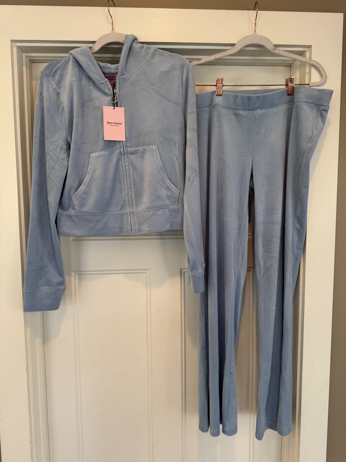 как выглядит JUICY COUTURE Velour OG Bling Tracksuit Hoodie Pant Set Frosted Size Large L NEW фото